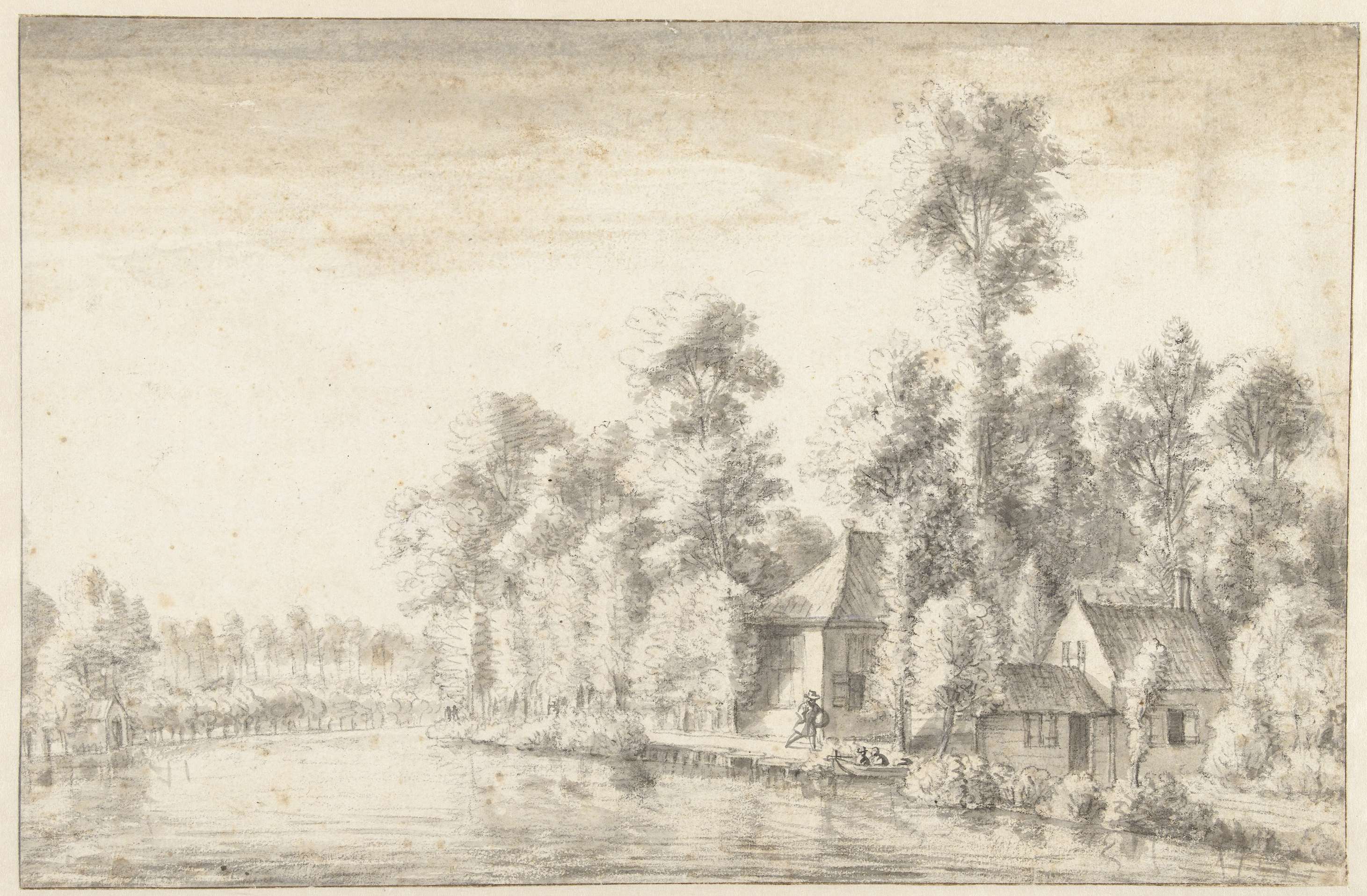 Riviergezicht met enkele huizen