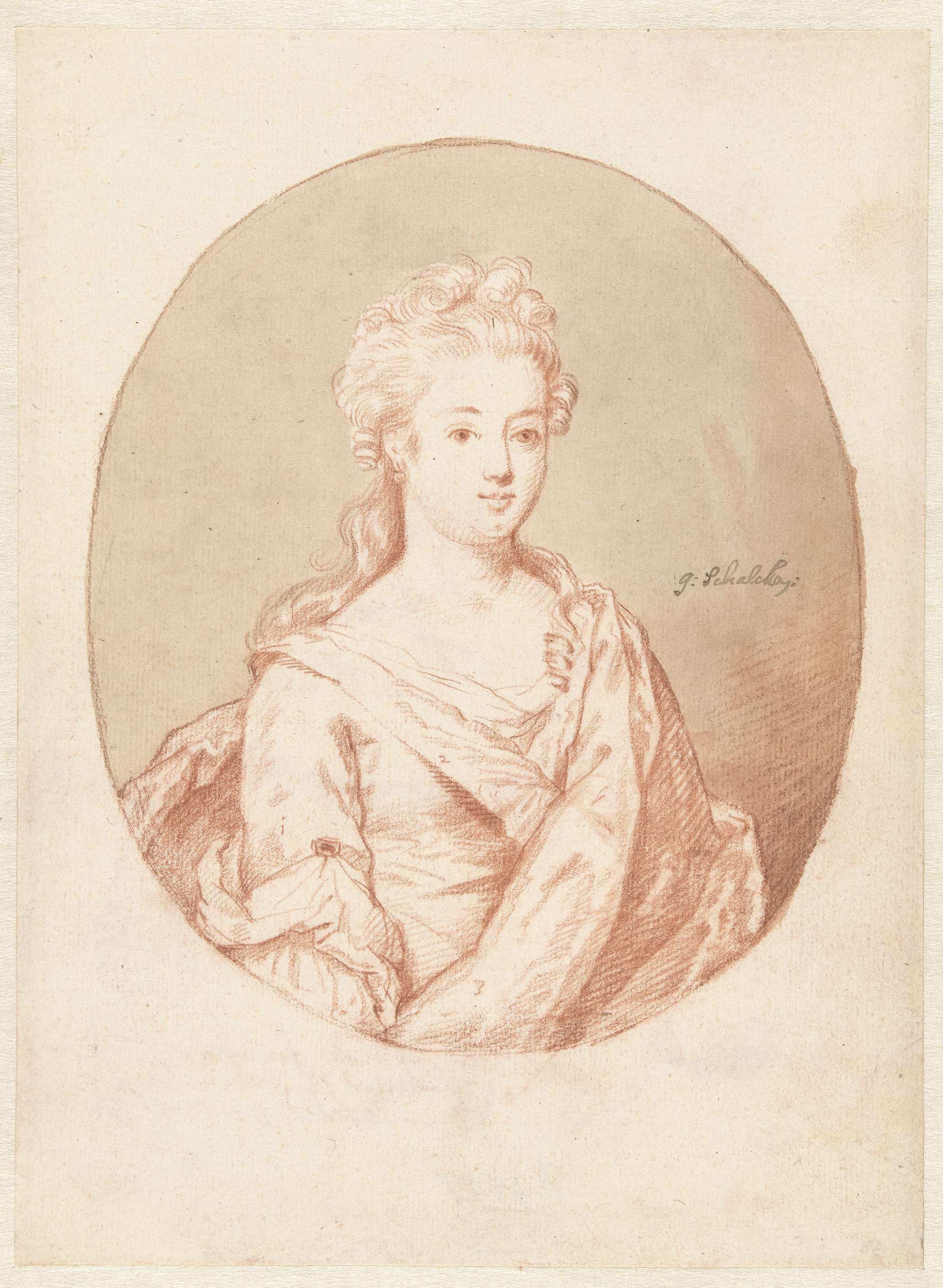 Buste van een jonge vrouw, zittend. Op de verso van de tekening een tegenafdruk (onopzettelijke afdruk?) van een mansportret in rood krijt, wellicht de tekening met inv. nr. RP-T-1890-A-2292.