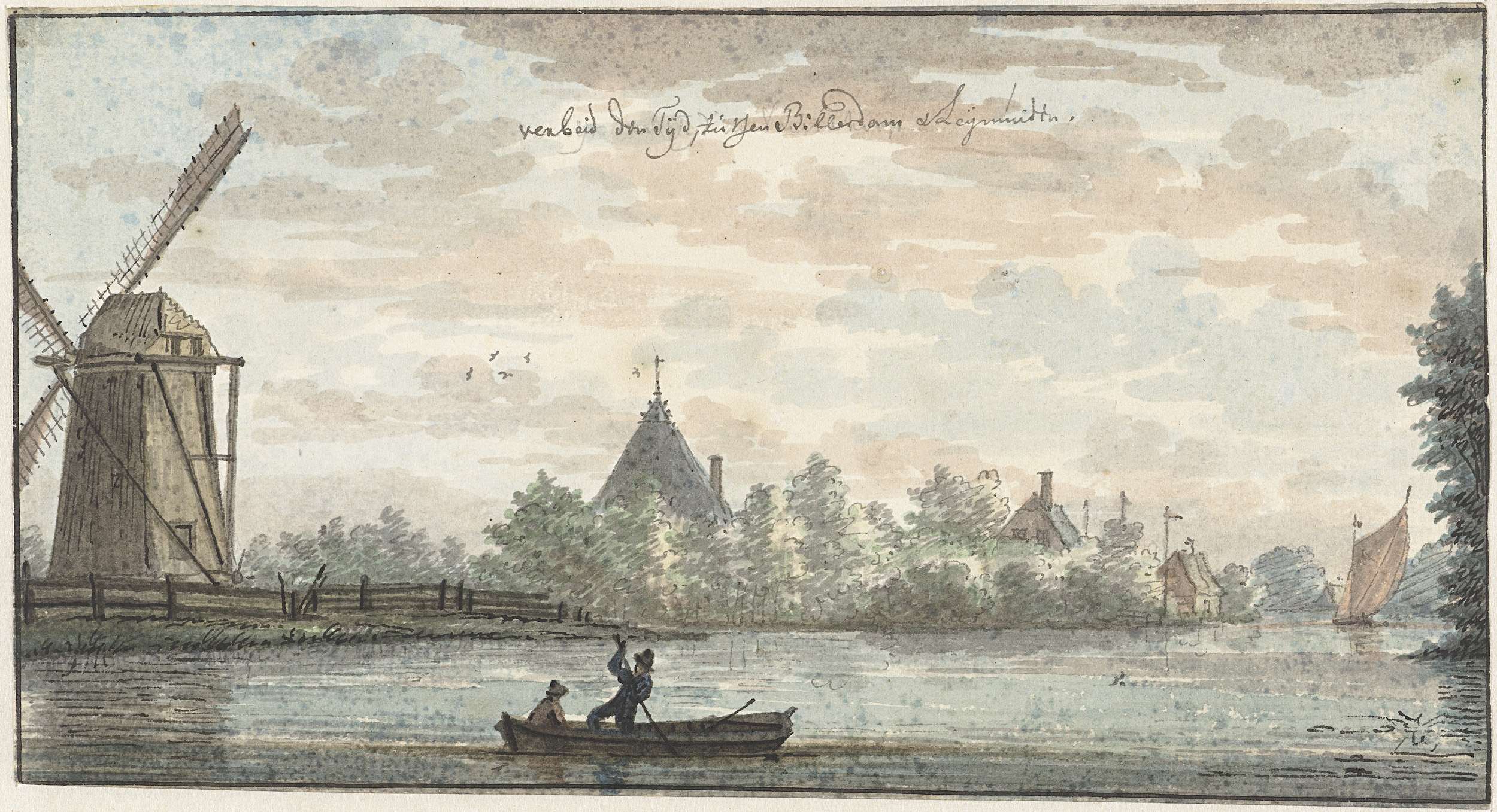 Windmolen 'De Vos' en woonhuis 'Verbeid Den Tijd' aan de Drecht tussen Leimuiden en Bilderdam