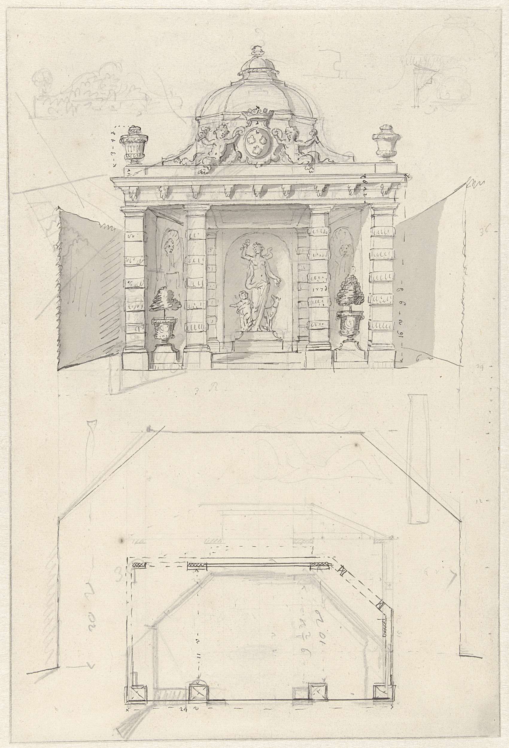 Ontwerp voor een tuinpaviljoen met wapen van de familie Van Keppel.