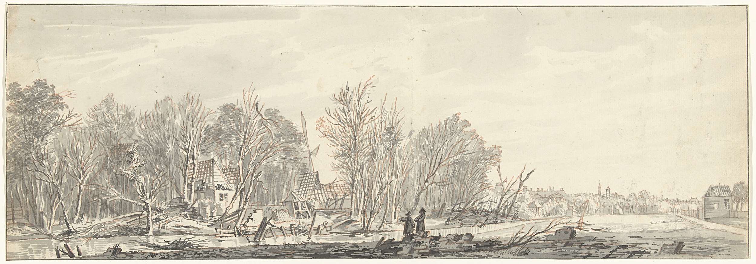 Gezicht op de ruïne van de kruitfabriek in de kruitmolen Sollenburg aan de Overtoom te Amsterdam na de ontploffing op 14 augustus 1758.