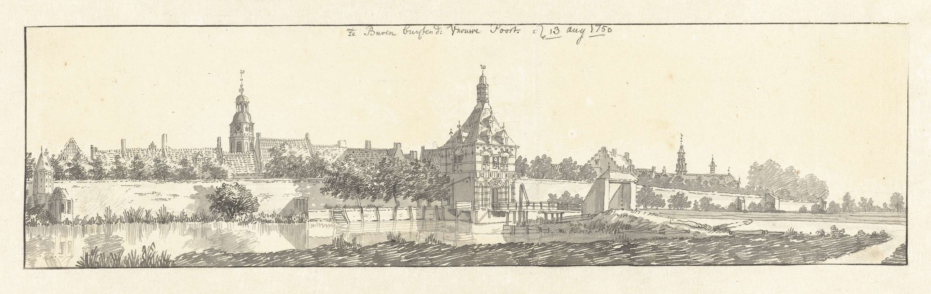 Gezicht op Buren met de Vrouwepoort
