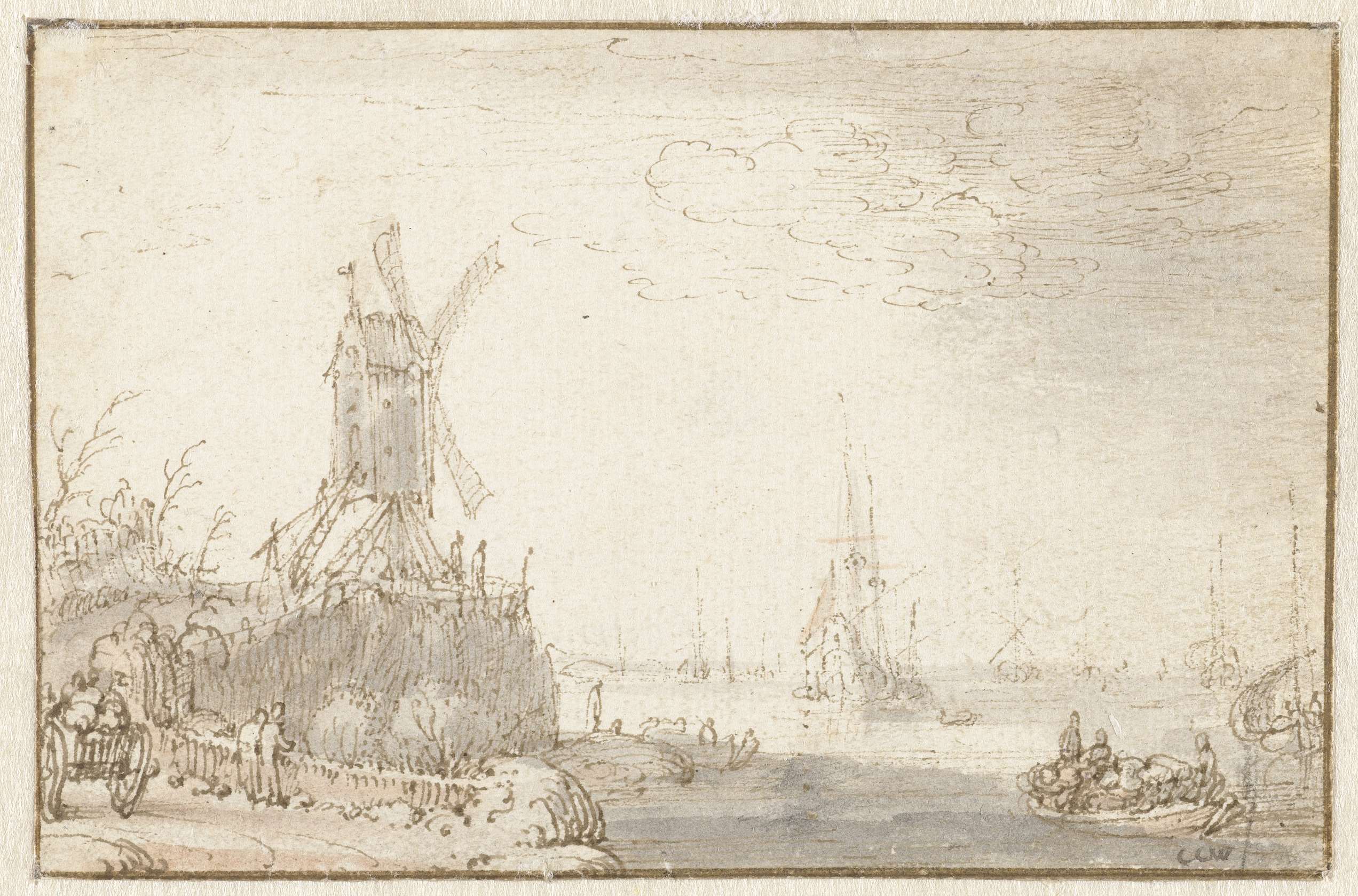 Riviergezicht met windmolen