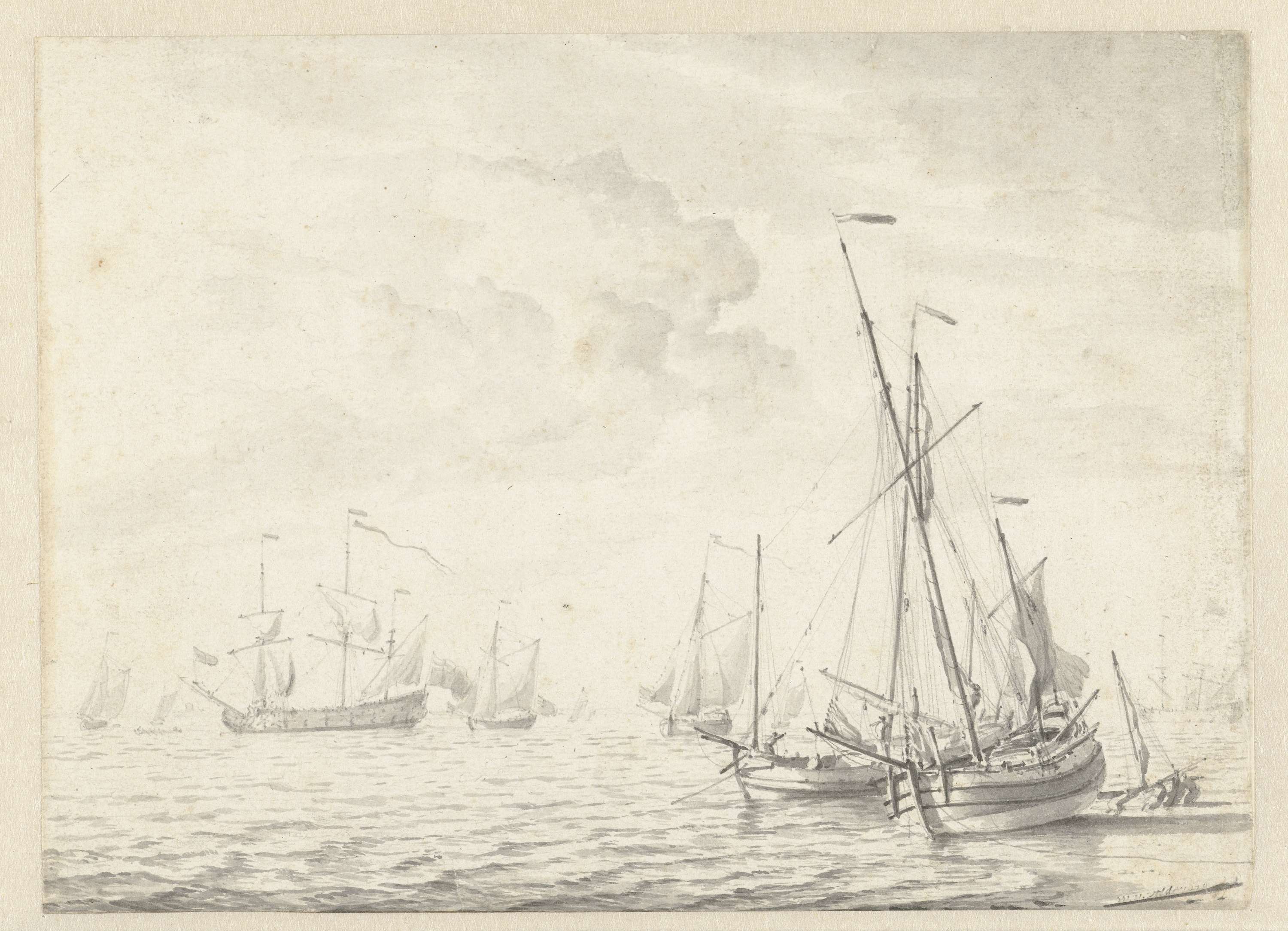 Zeegezicht met enkele schepen