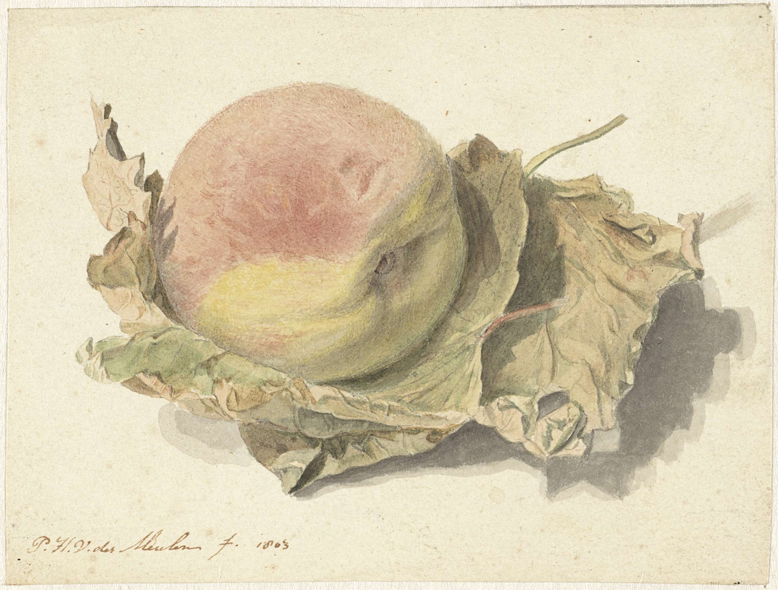 Perzik op twee bladeren