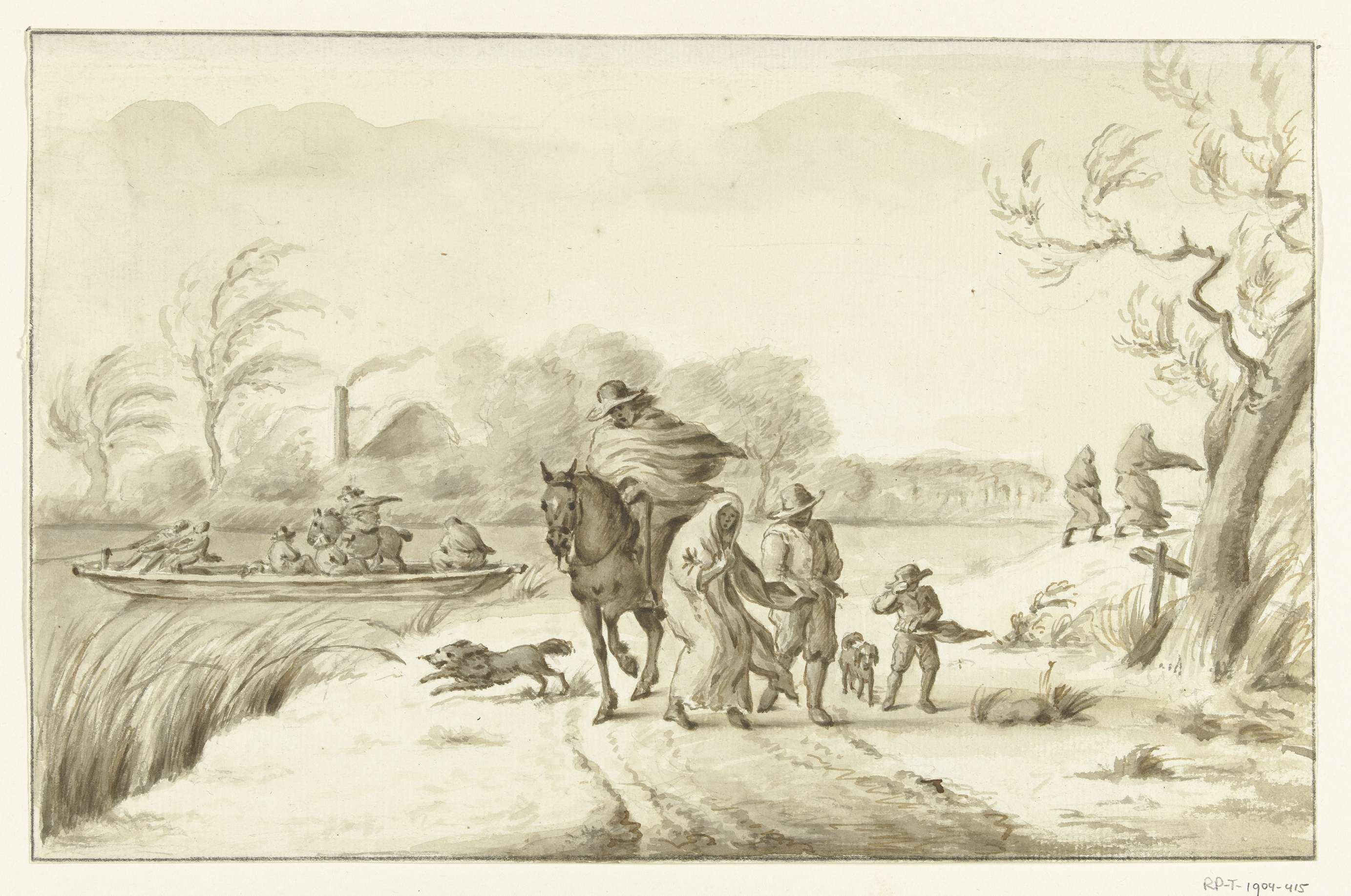 Landschap met figuren in storm