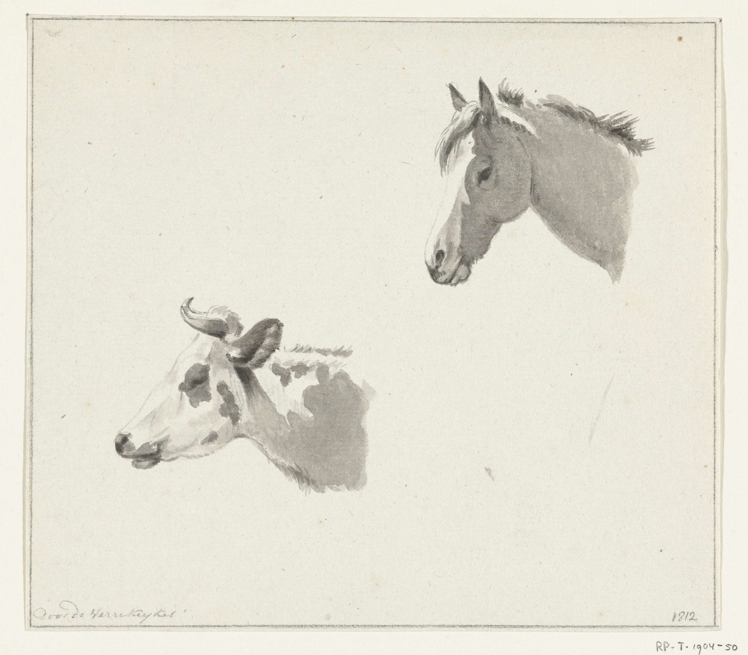 Hoofd van een paard en de kop van een koe