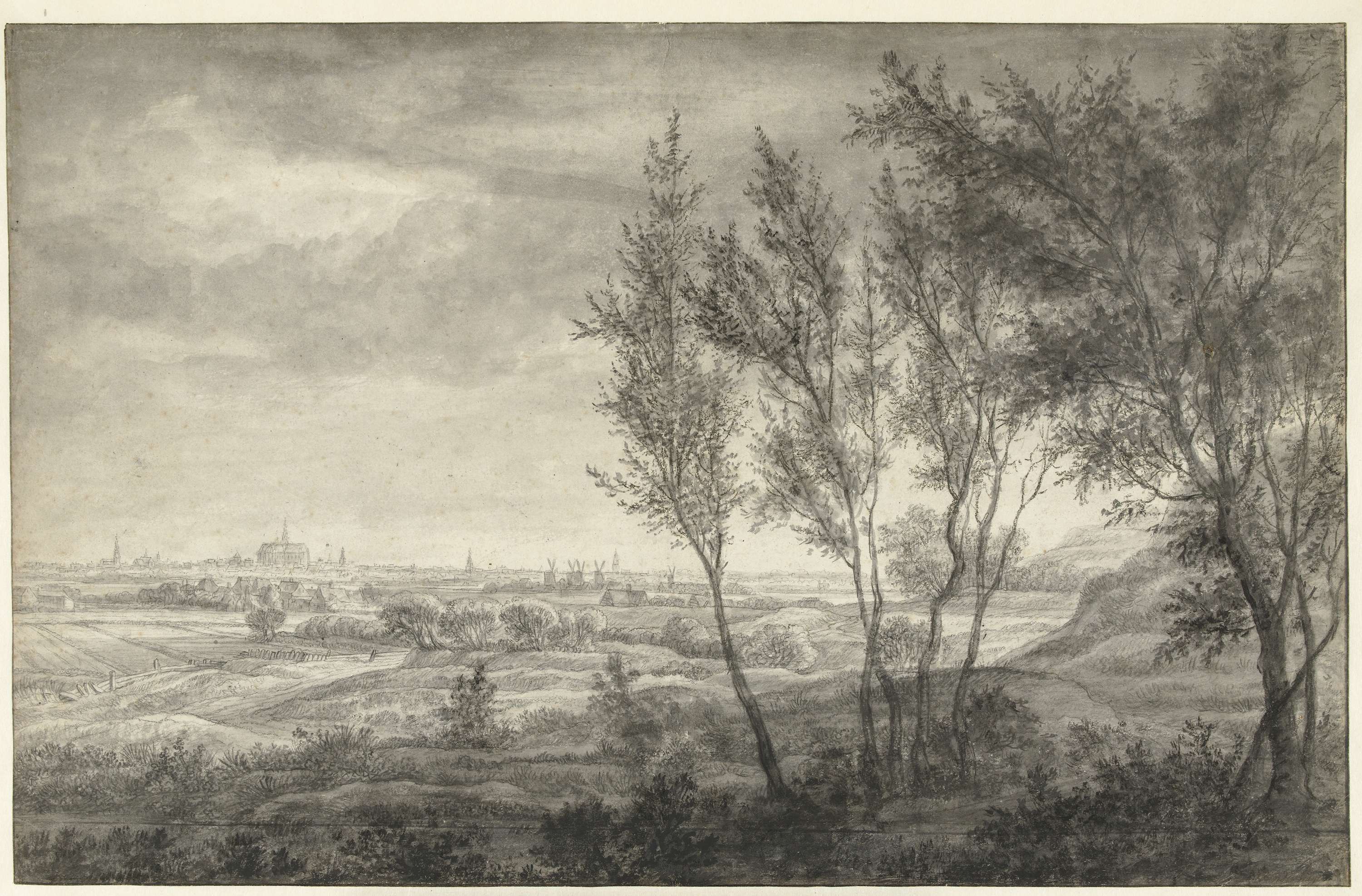 Rechterhelft van een gezicht vanuit de duinen op Haarlem (linkerhelft heeft objectnummer RP-T-1905-18A).