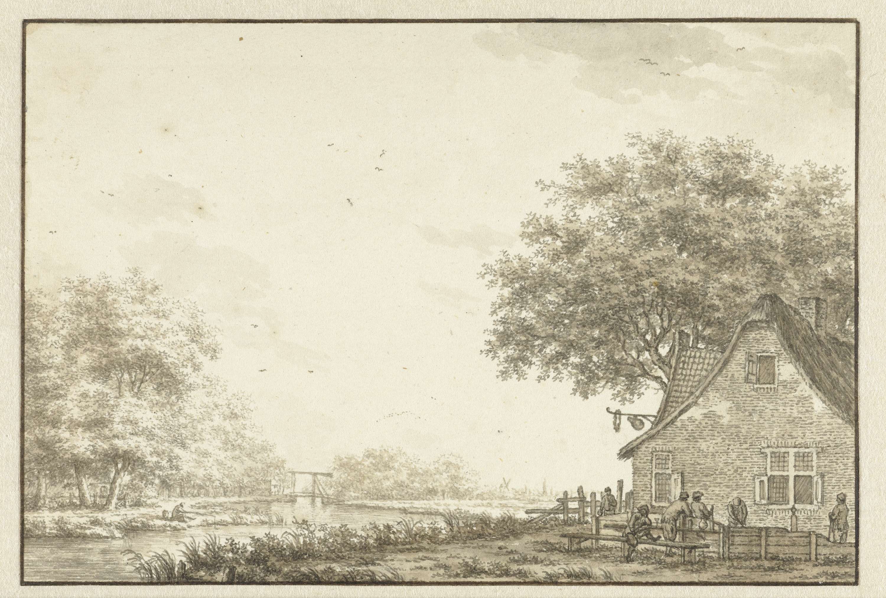 Kolfspelers bij een herberg aan een water