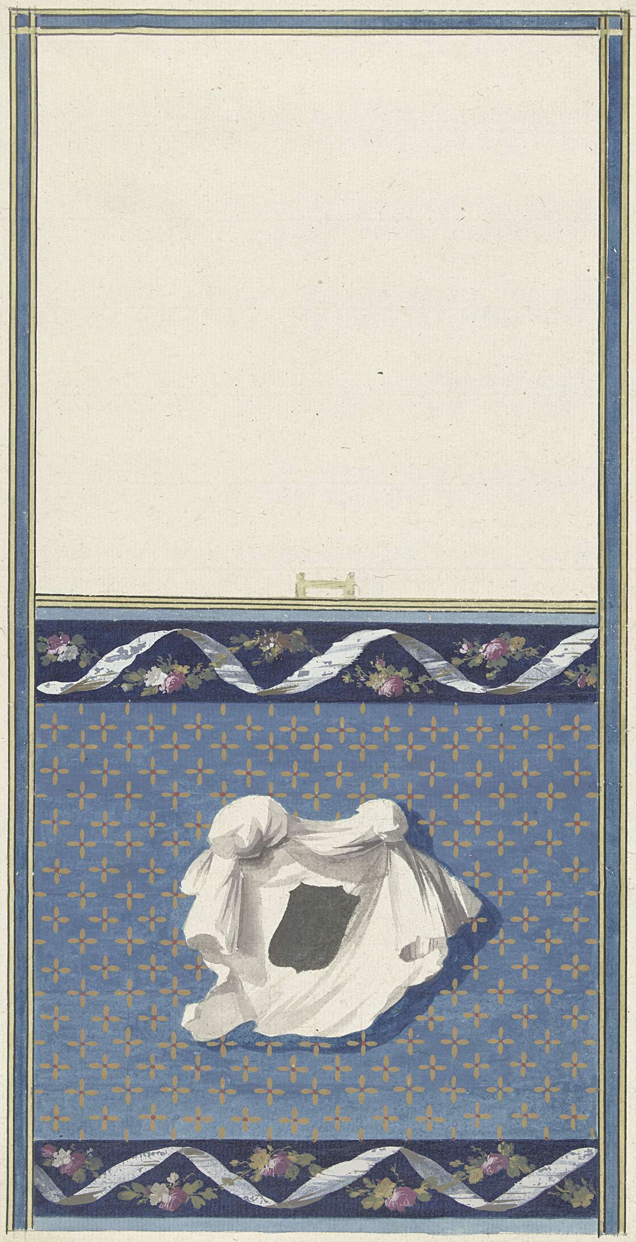 Ontwerp voor kamerversiering met verticaal twee panelen, de onderste met een witte doek op een sterrenfond