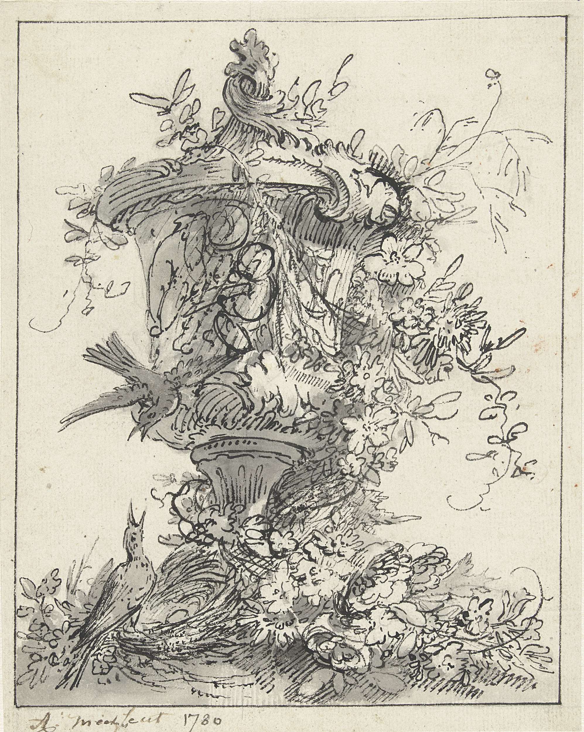 Ontwerp voor een kamerversiering met tuinvaas met planten en vogels