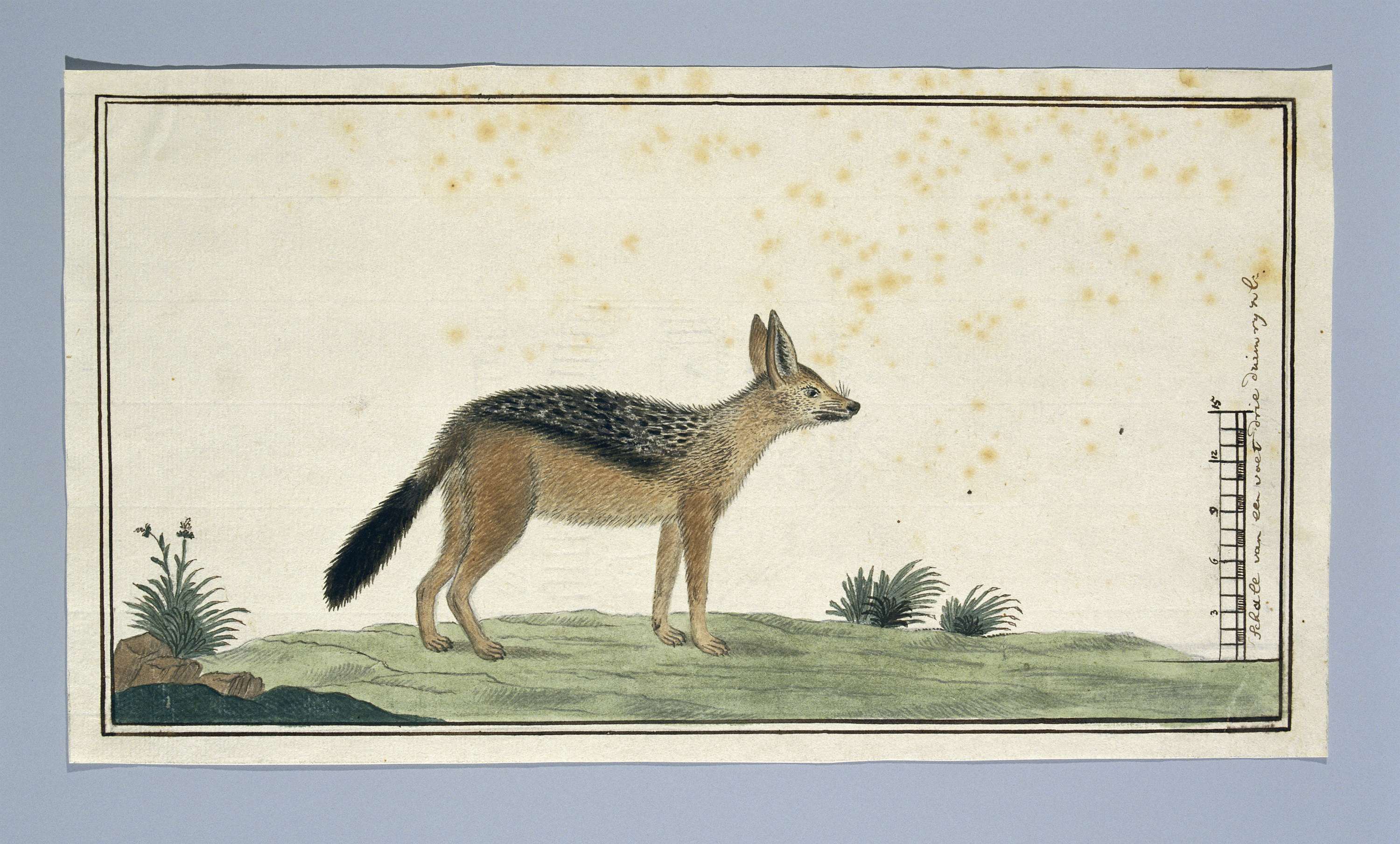 Jakhals of Kaapse vos (Canis mesomelas), met schaalverdeling in Rijnlandse voet en duim.