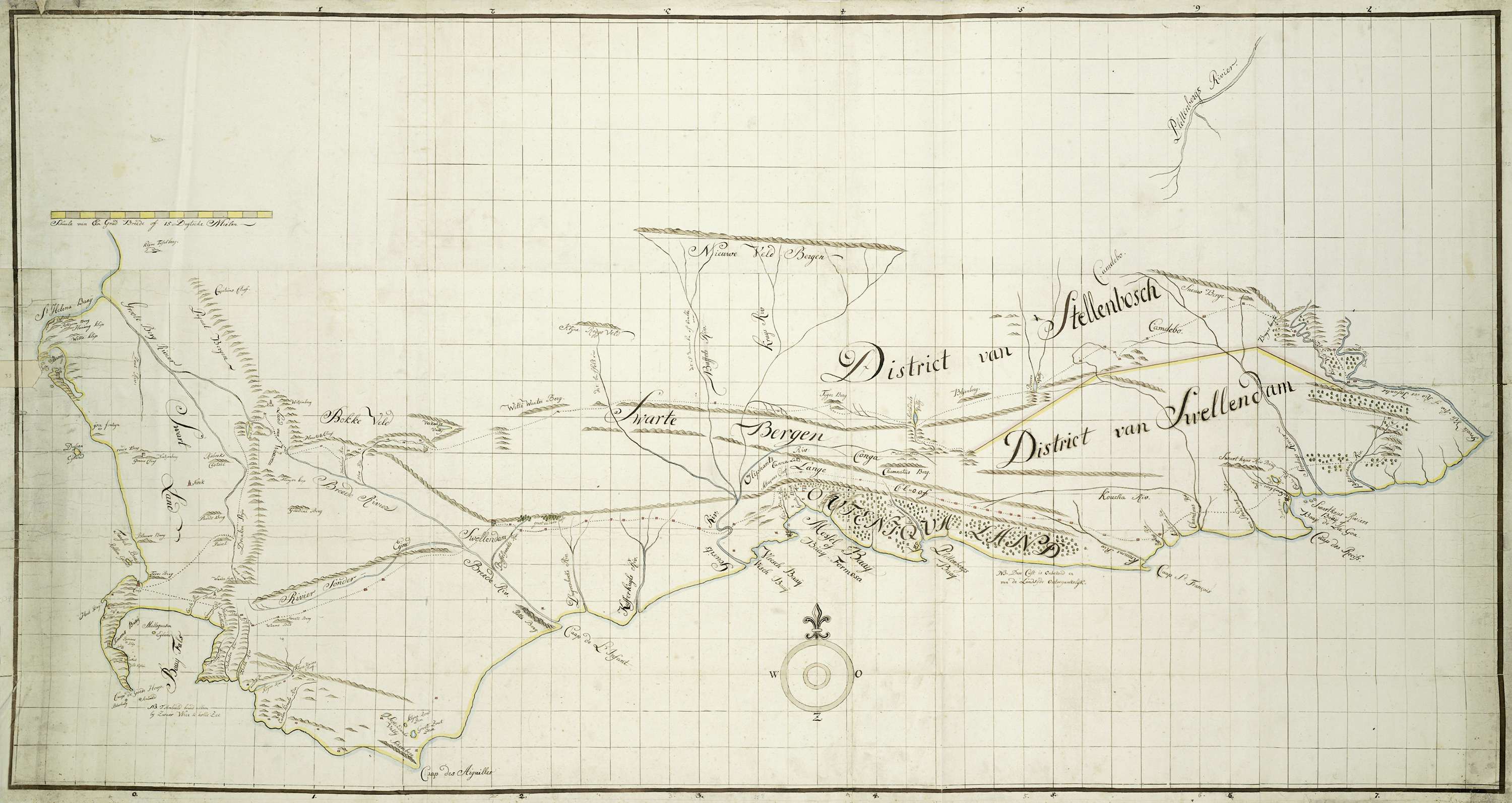 De kaart dekt een gebied tussen St. Helenabaai in het westen tot de monding van de Grote Visrivier in het oosten, in het noorden begrensd door de lijn Grote Bergrivier - Piketberg - Bokkeveld - Kleine Roggeveld - Nieuweveldsbergen - Camdebo - Sneeuwbergen - Grote Visrivier; ontsloten door middel van een gidskaart, met coördinaten van ...
