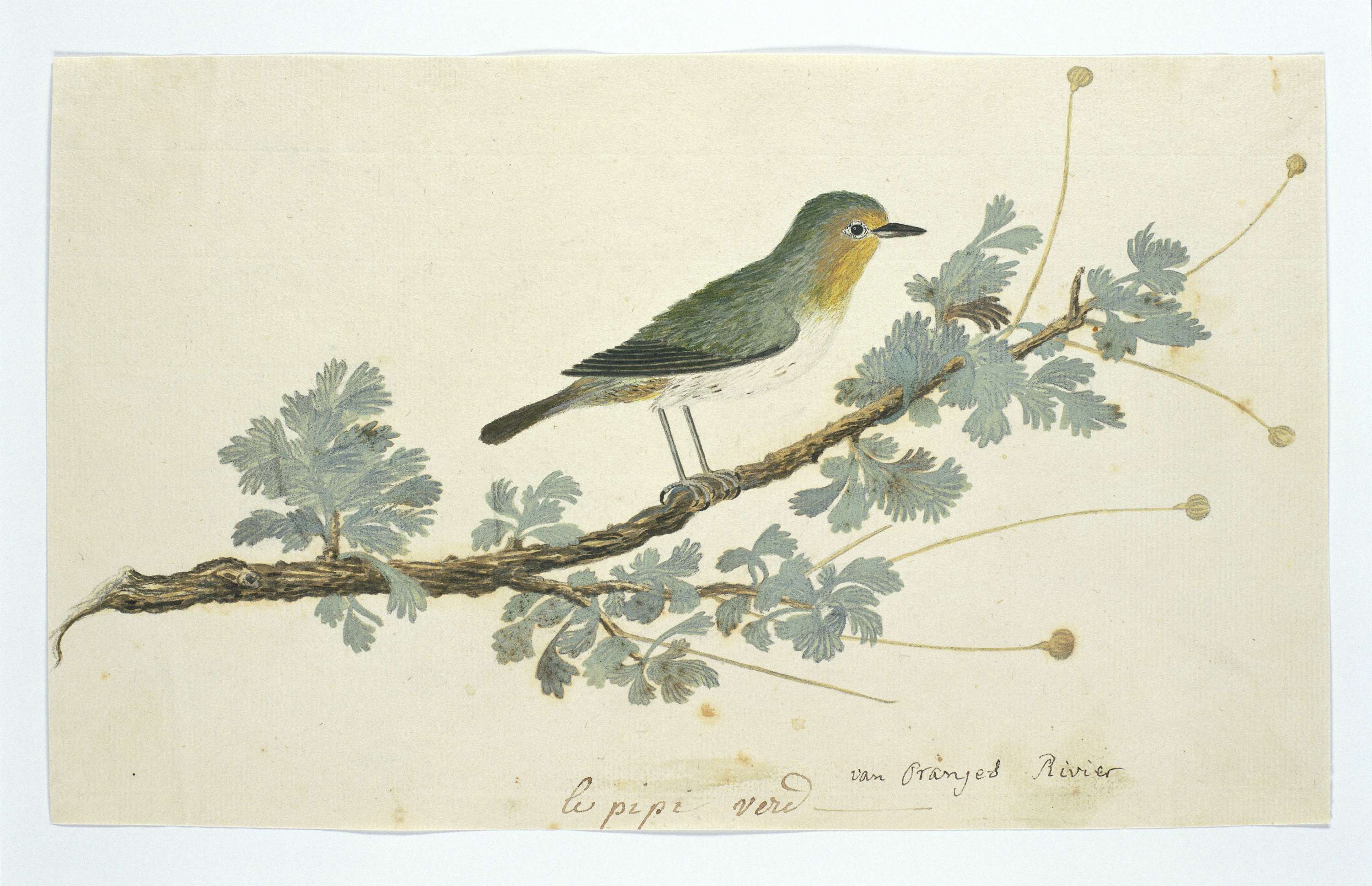 Vogelstudie: Brilvogel (Zosterops pallidus), waargenomen aan de Oranjerivier.