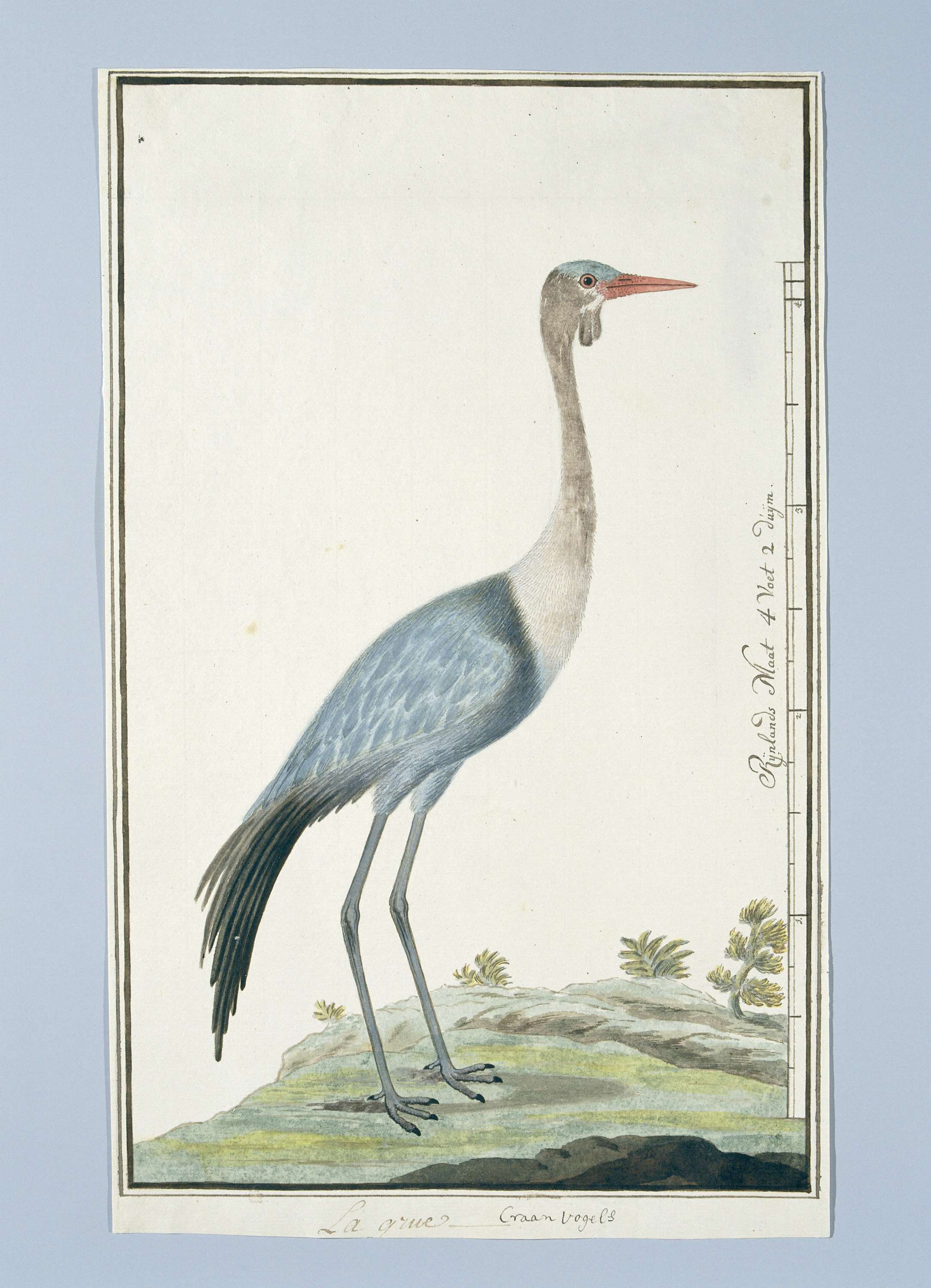 Vogelstudie: Lelkraanvogel (Grus carunculata), met schaalverdeling in Rijnlandse maat.