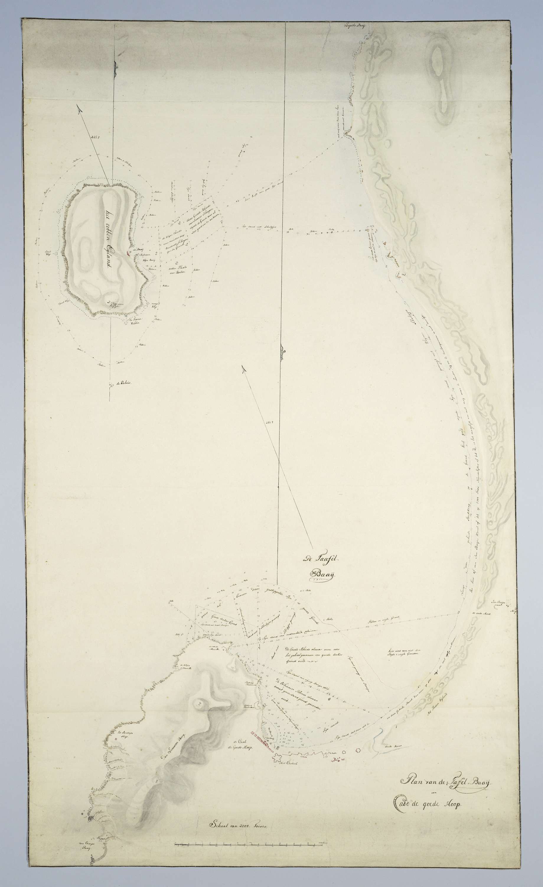 Ontsloten door middel van een gidskaart met afgebakende gebieden, aangeduid door de letters A t/m G met aanduidingen van het soort zand, de aanwezige rotsen en locaties met hun namen; deel F: Kaapstad, geeft ook de namen van de gebouwen langs de Tafelbaai aan.
