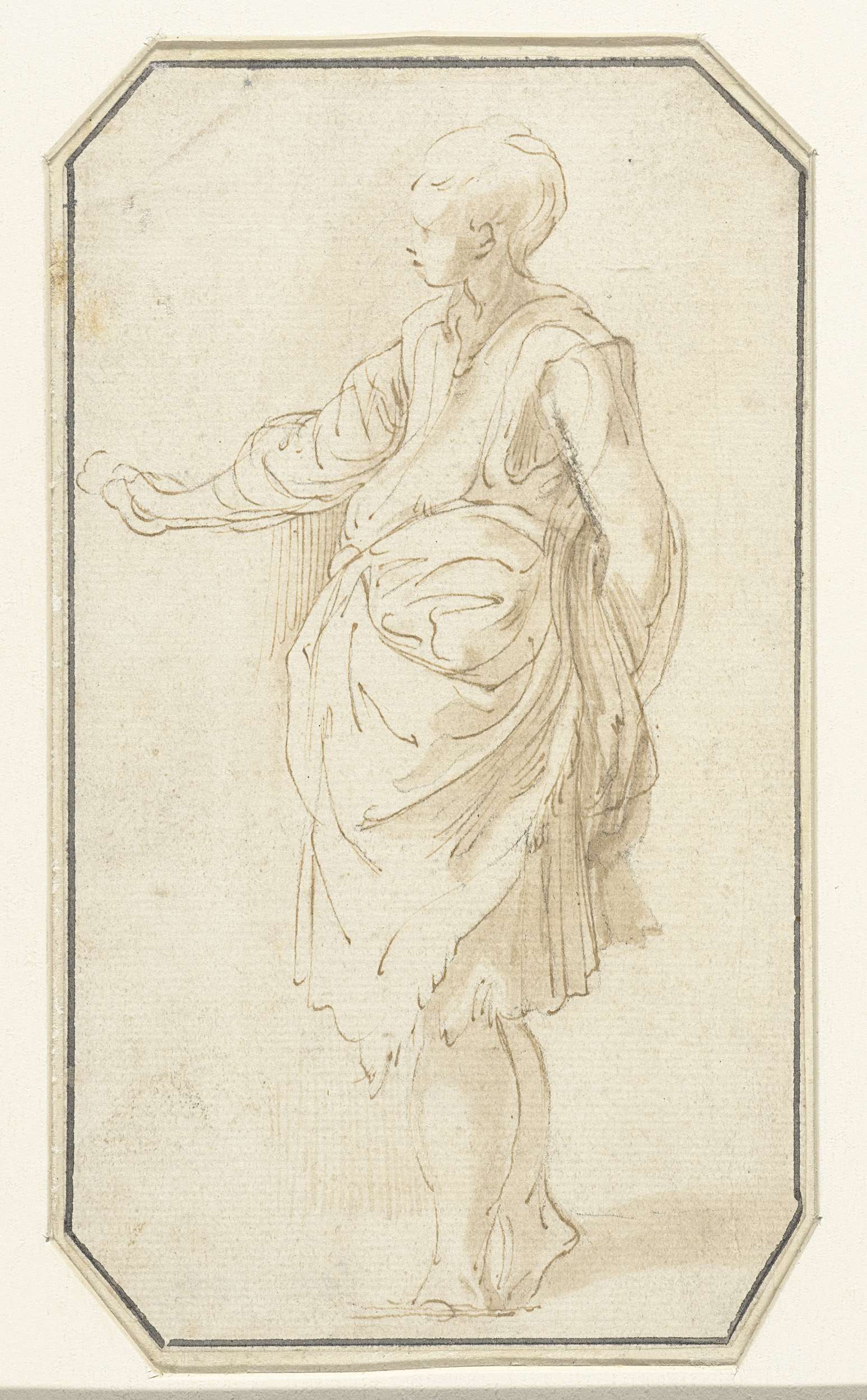 Staande vrouw, naar links gewend