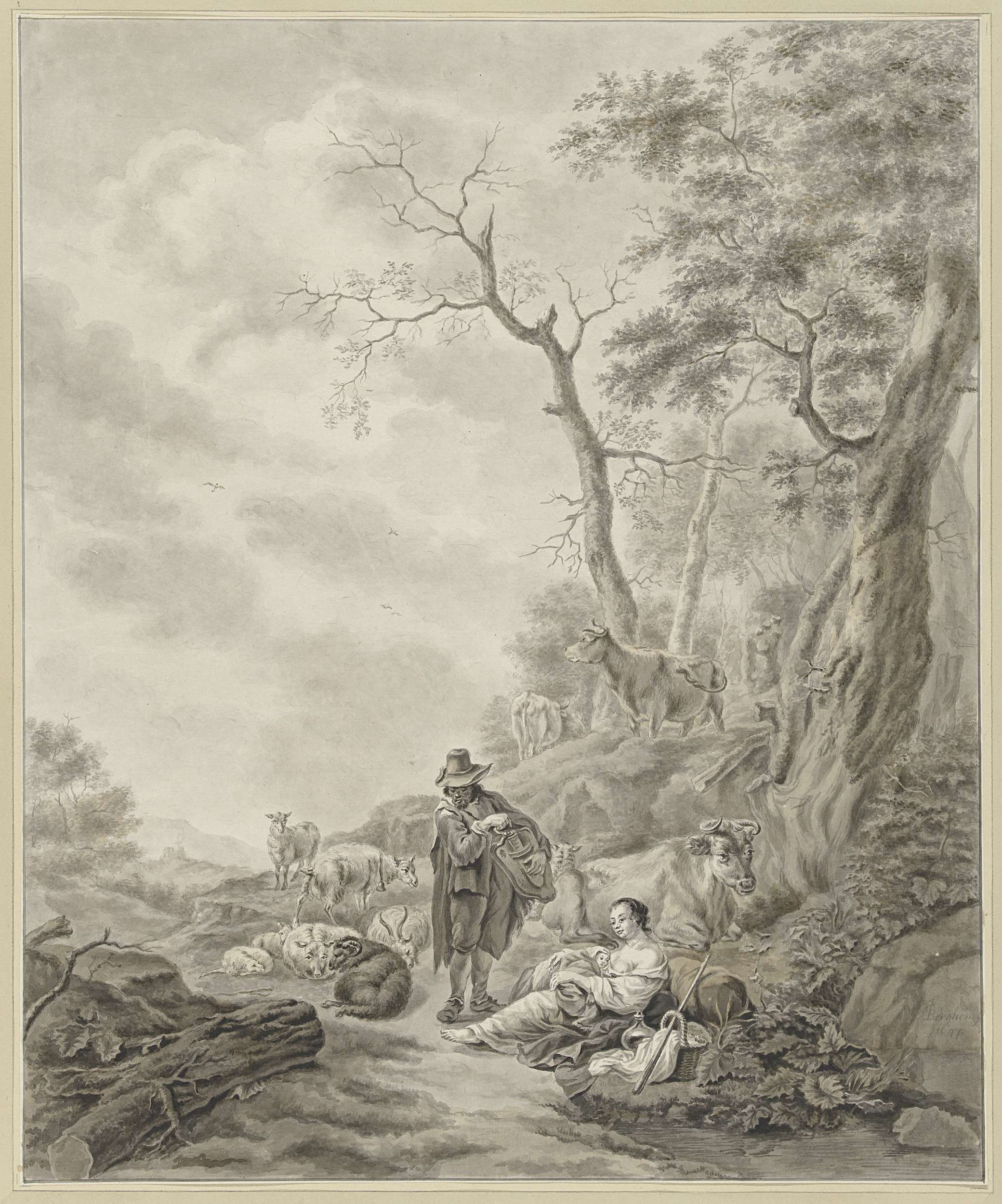 Landschap met liereman bij herderin en vee