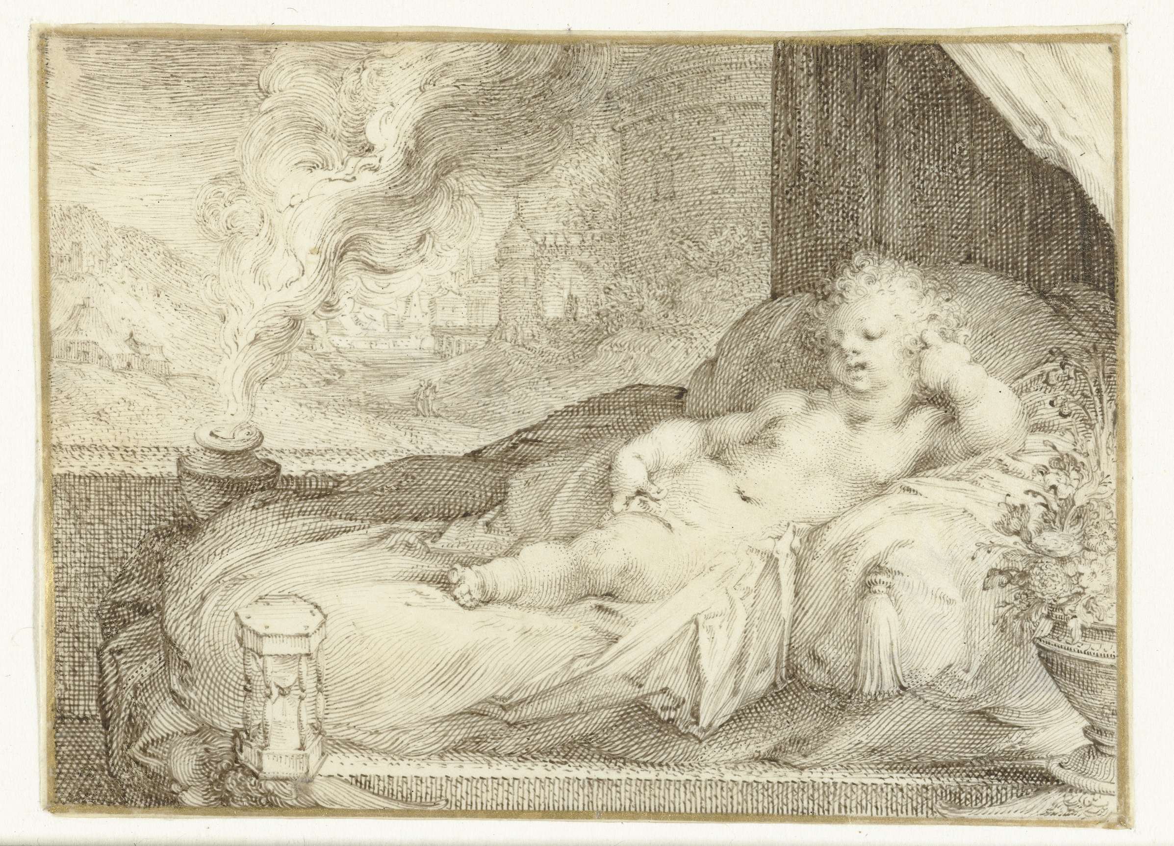 Putto liggend op een bank
