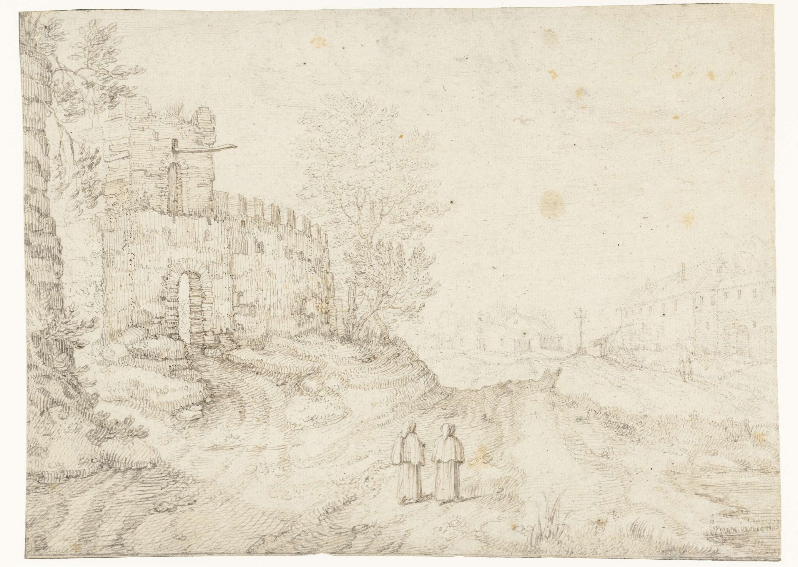 Landweg langs stadsmuur en klooster
