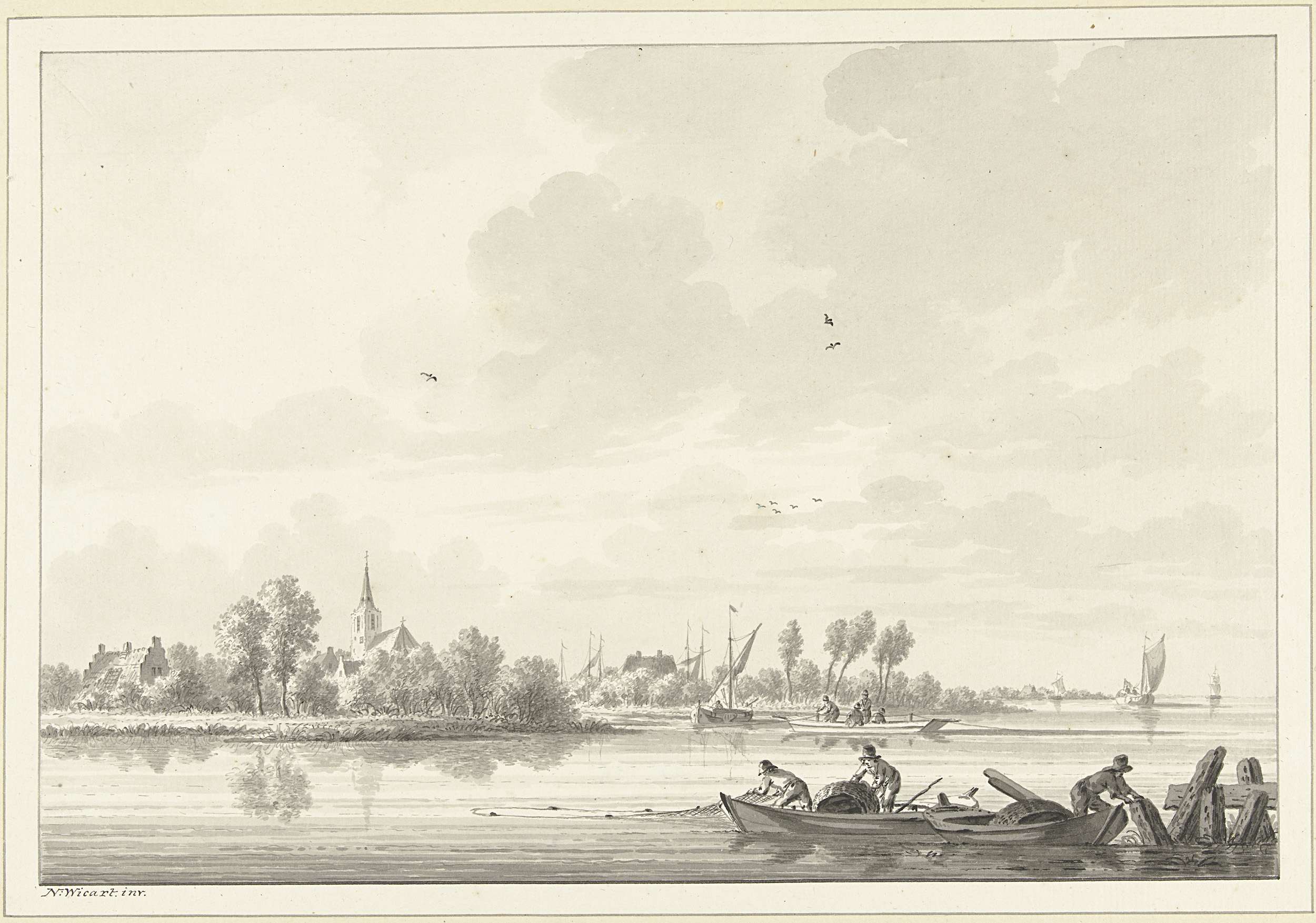 Vissers op de Lek bij het dorp Tuil