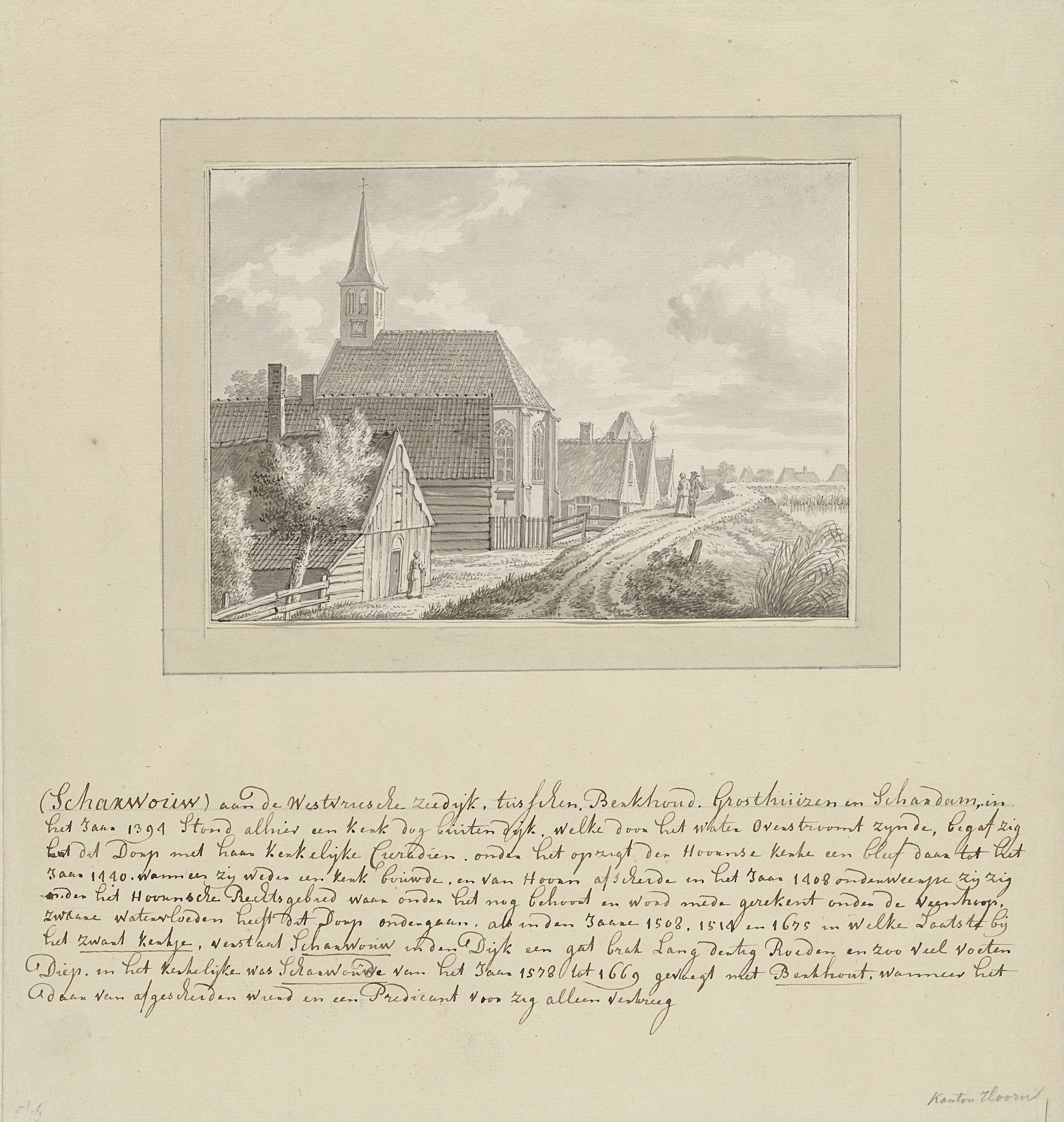 Gezicht op de het dorp Scharwoude aan de Westfriese zeedijk