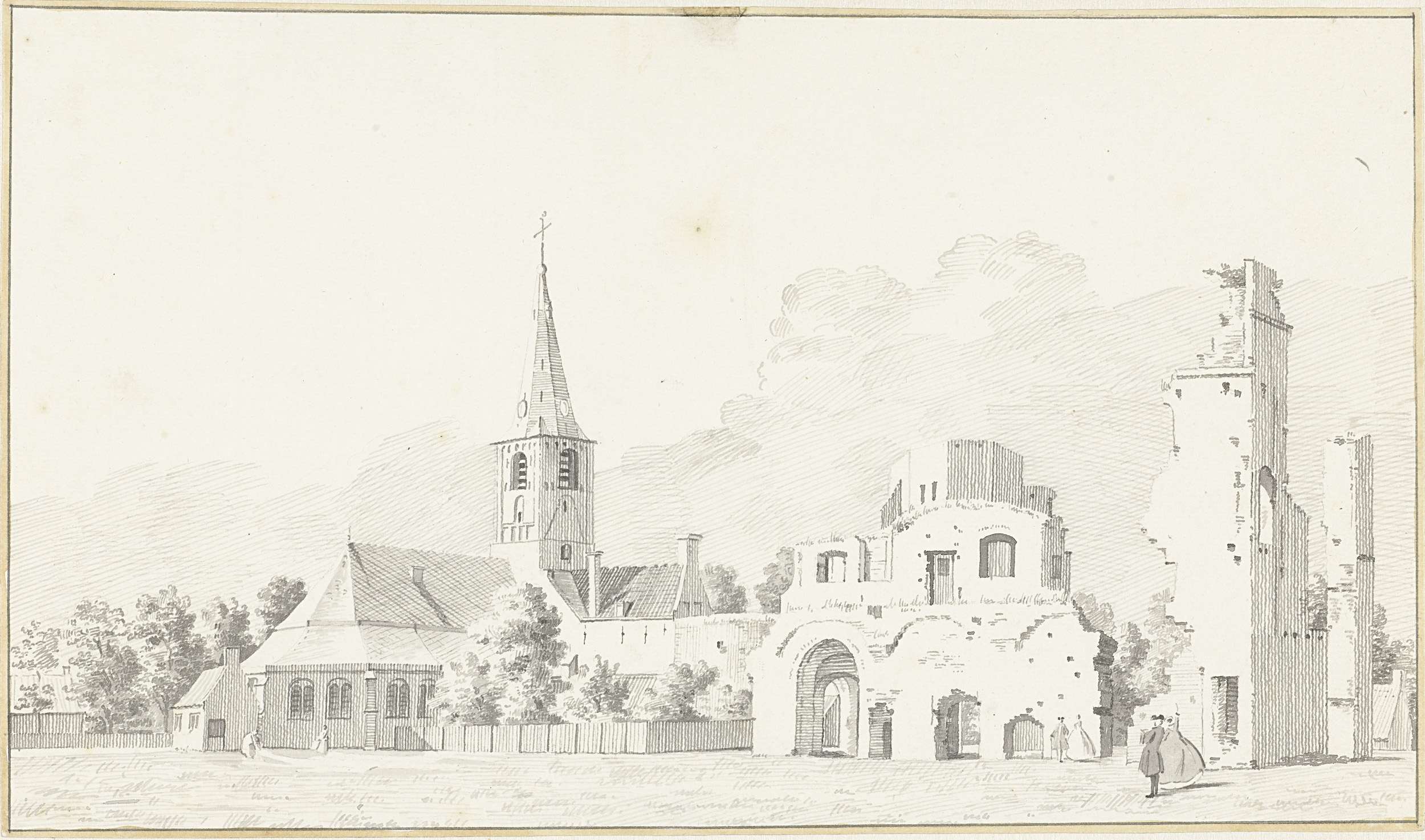 Kerk en de ruïne van de abdij van Rijnsburg