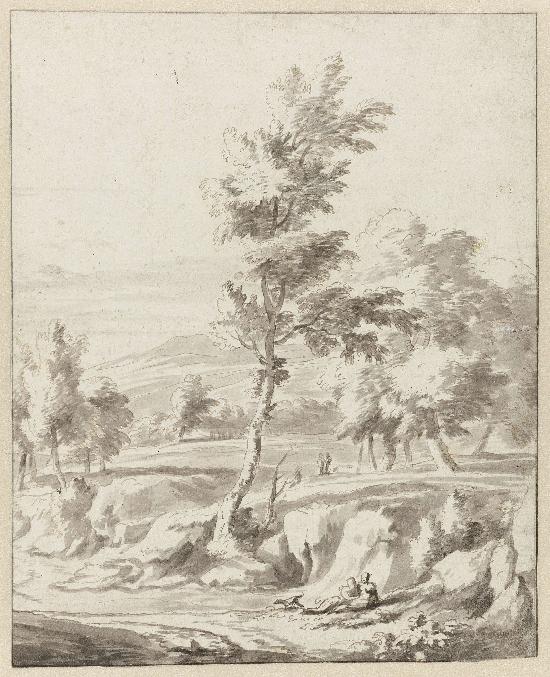 Landschap met op de voorgrond een liefdespaar