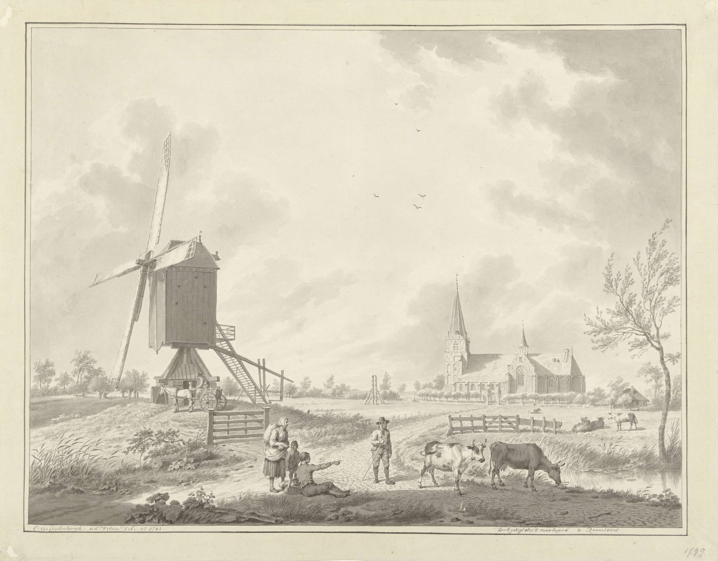 Gezicht over het moolepad op de kerk van Raamsdonk