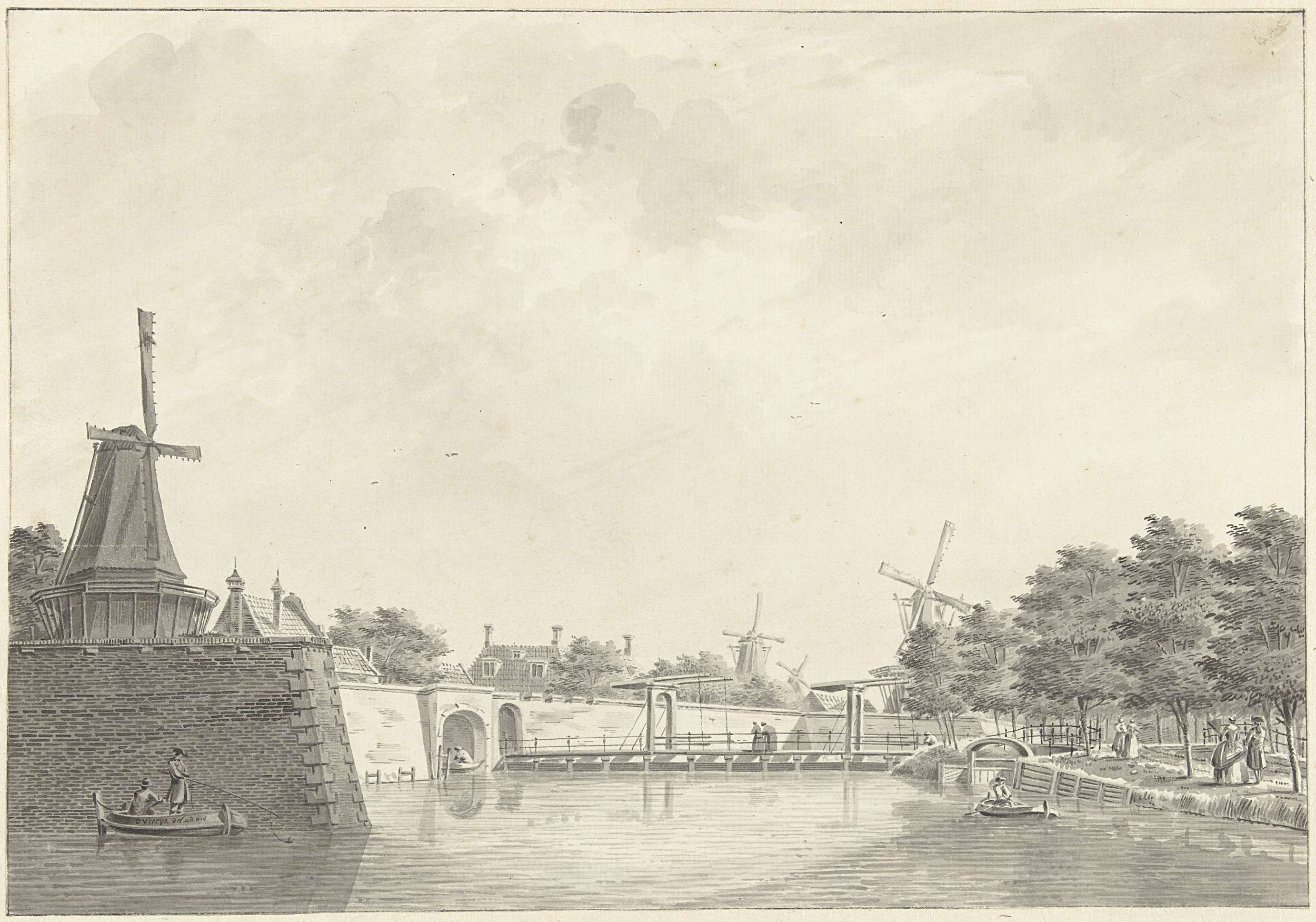 De Weteringspoort in Amsterdam met molen De Spiering.