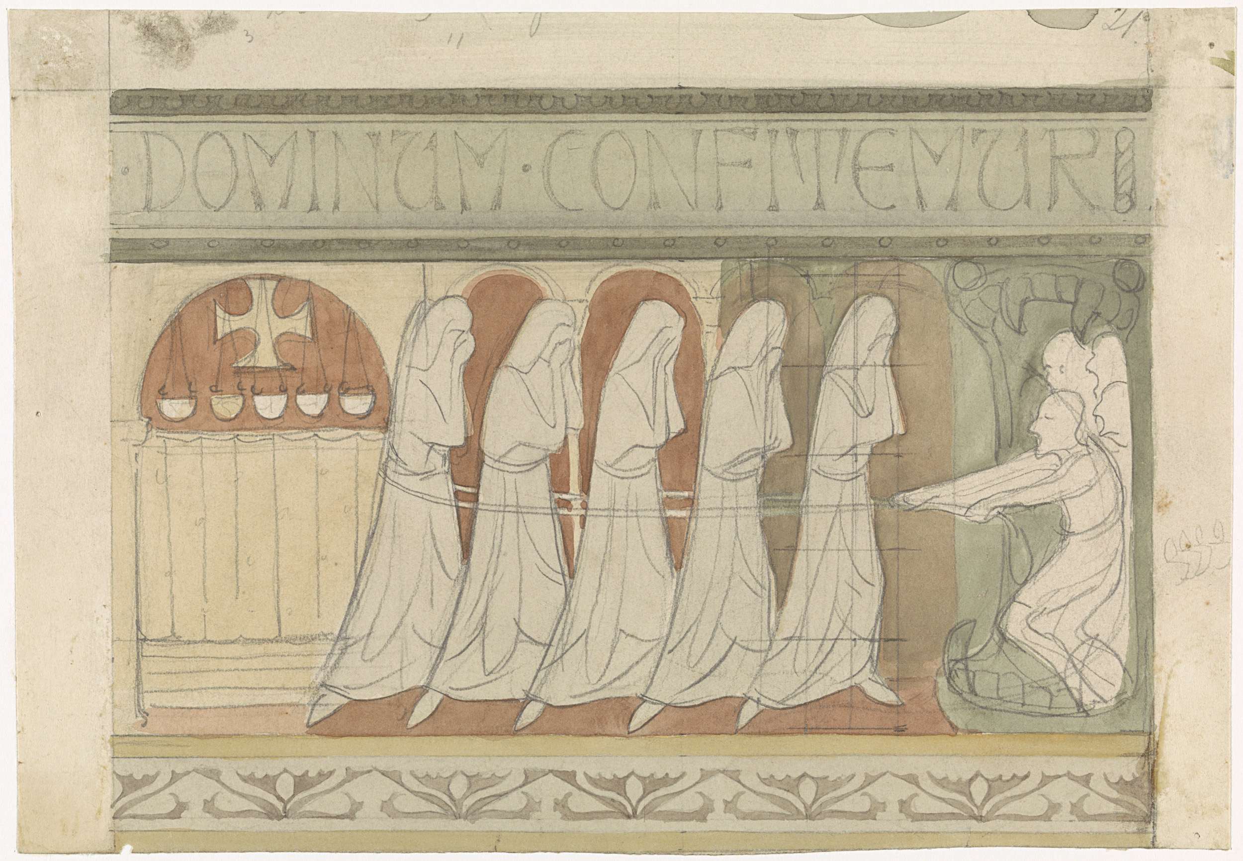 De vijf dwaze maagden worden door de duivel de hel ingetrokken