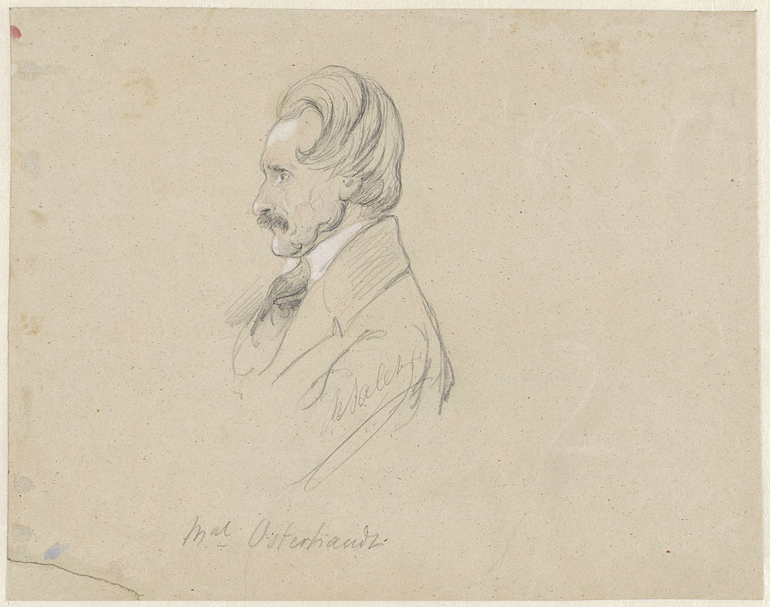 Portret van de schilder Daniël van Oosterhoudt, in profiel naar links