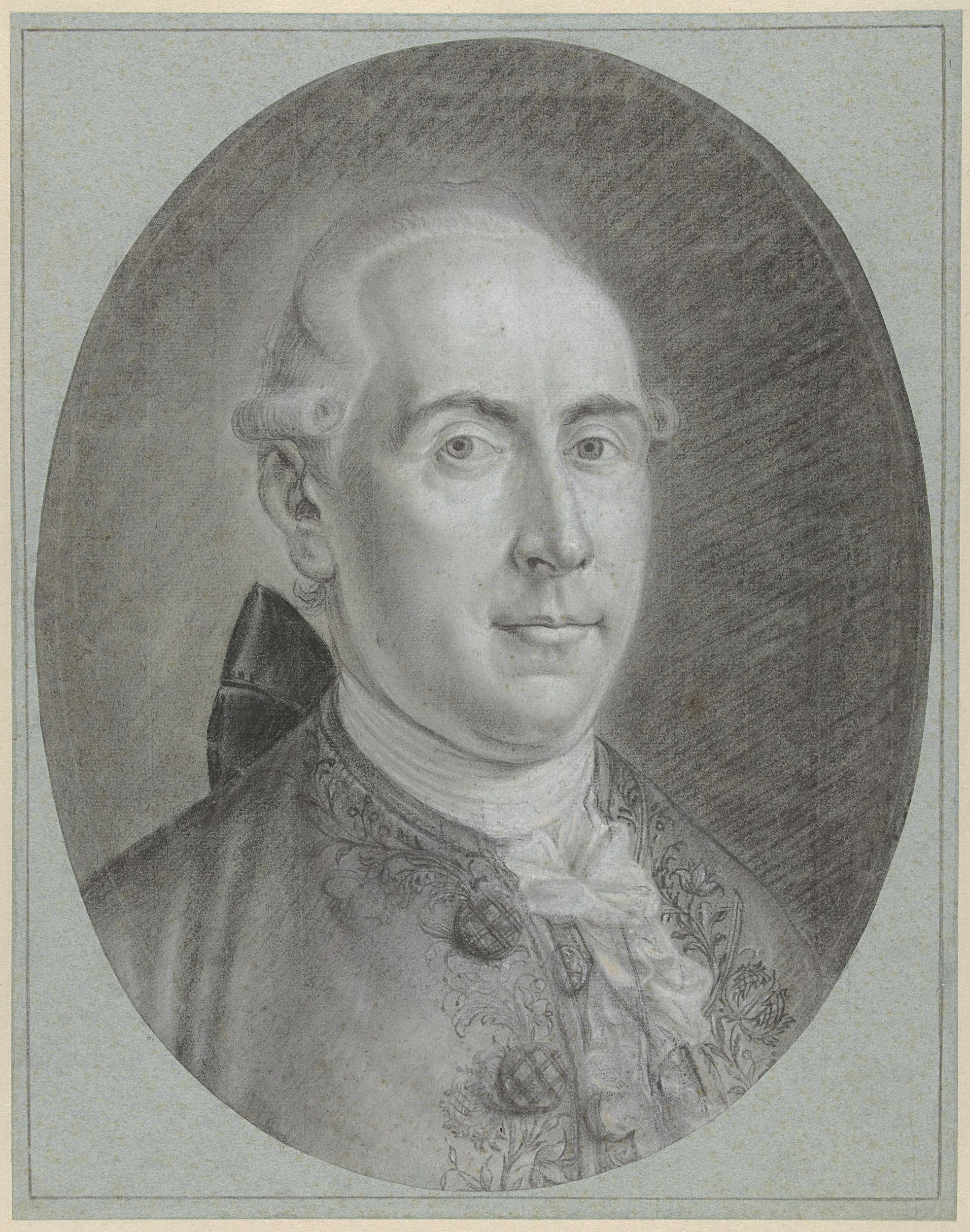 Portret van Johan Derk van de Capellen (?), borstbeeld naar rechts in ovaal in rechthoek.