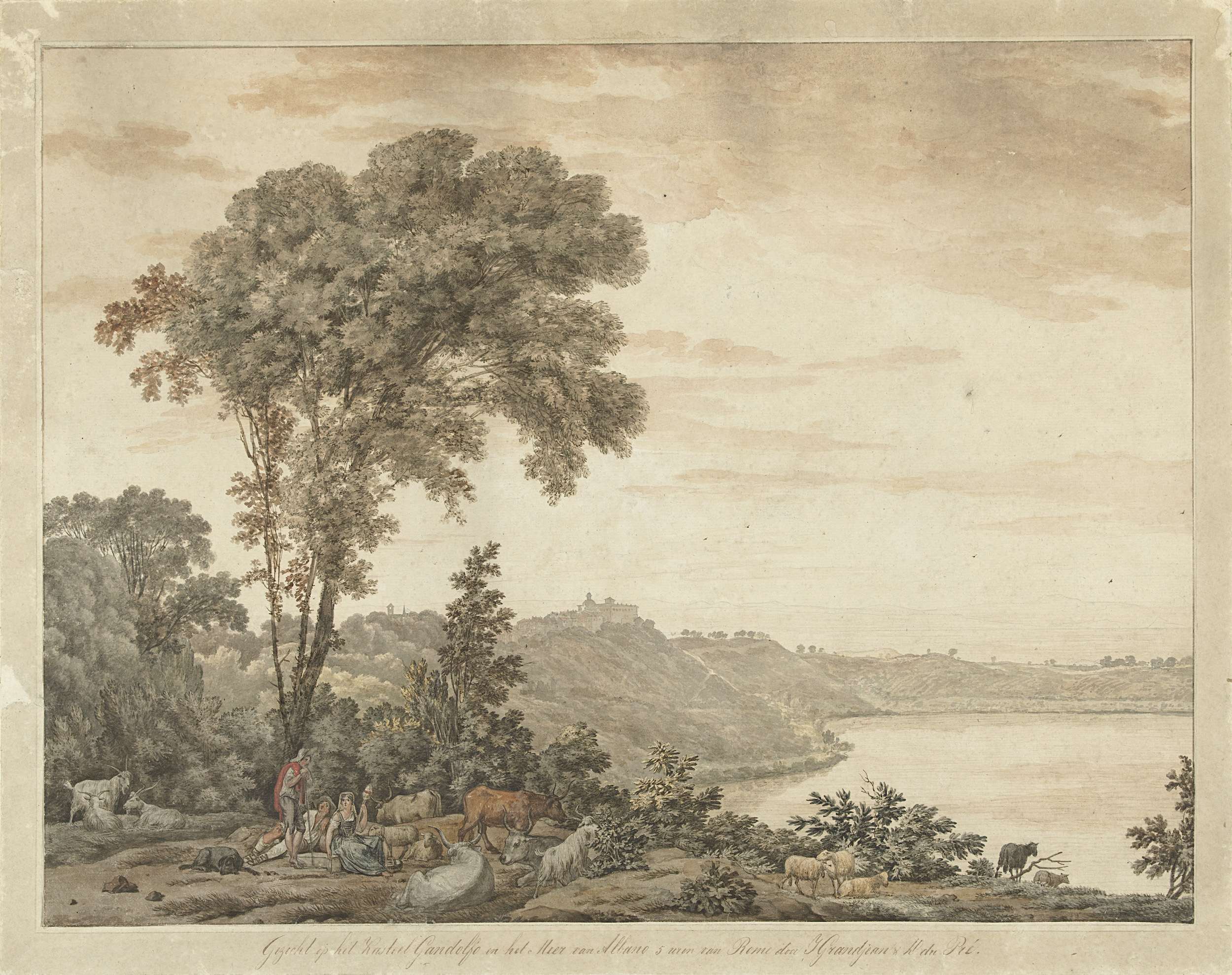 Gezicht op Castel Gandolfo en het meer van Albano