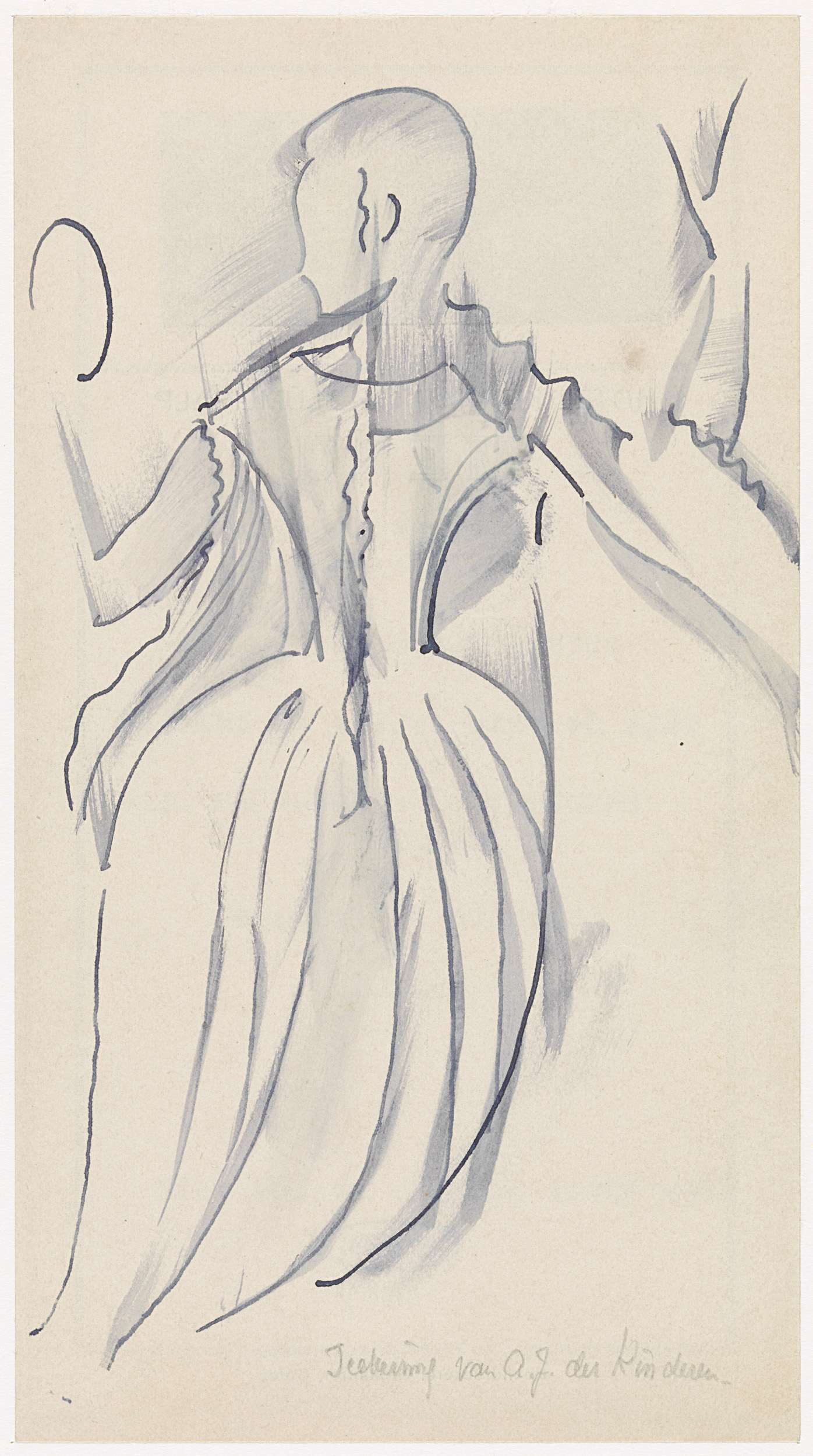 Allegorische vrouwenfiguur met een spiegel, op de rug gezien
