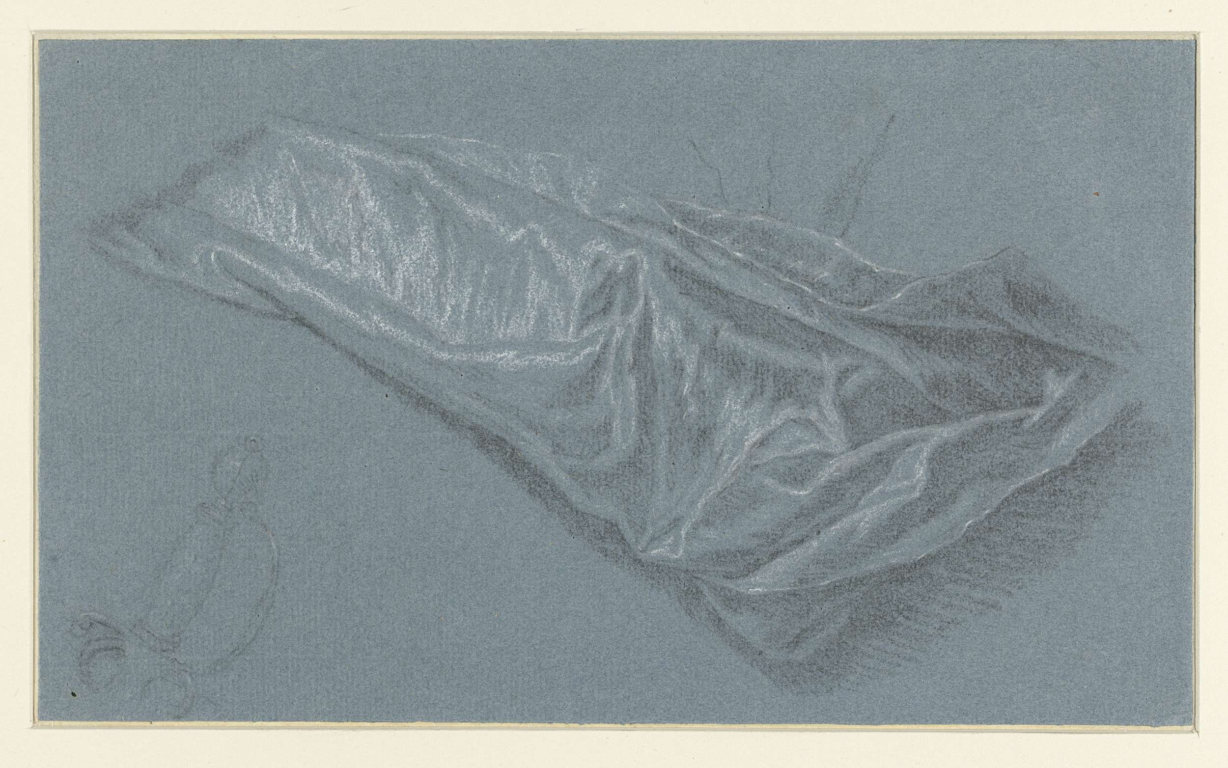 Gedrapeerde stof met onderaan de handgreep van een degen