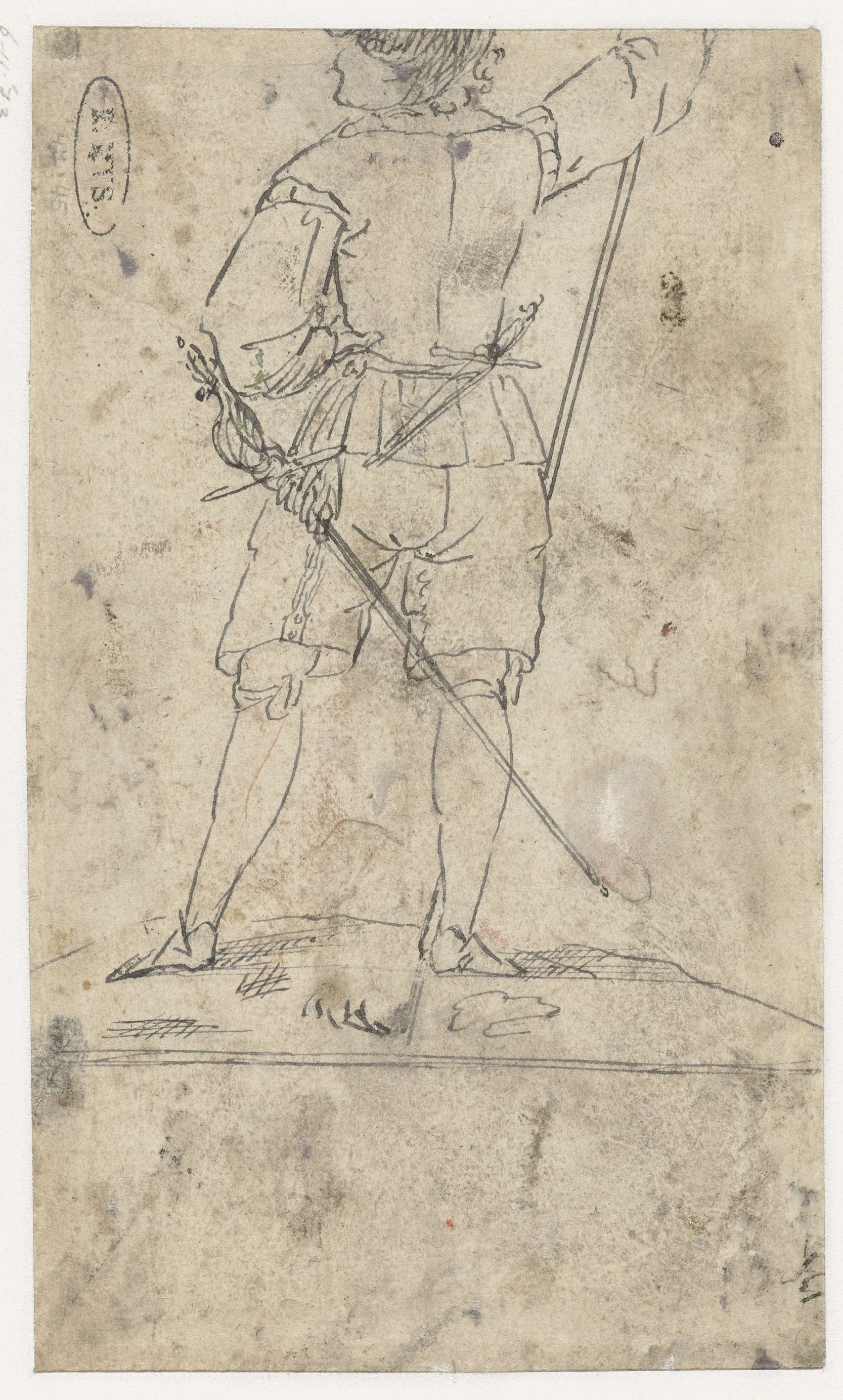 Studie van een staande soldaat, op de rug gezien