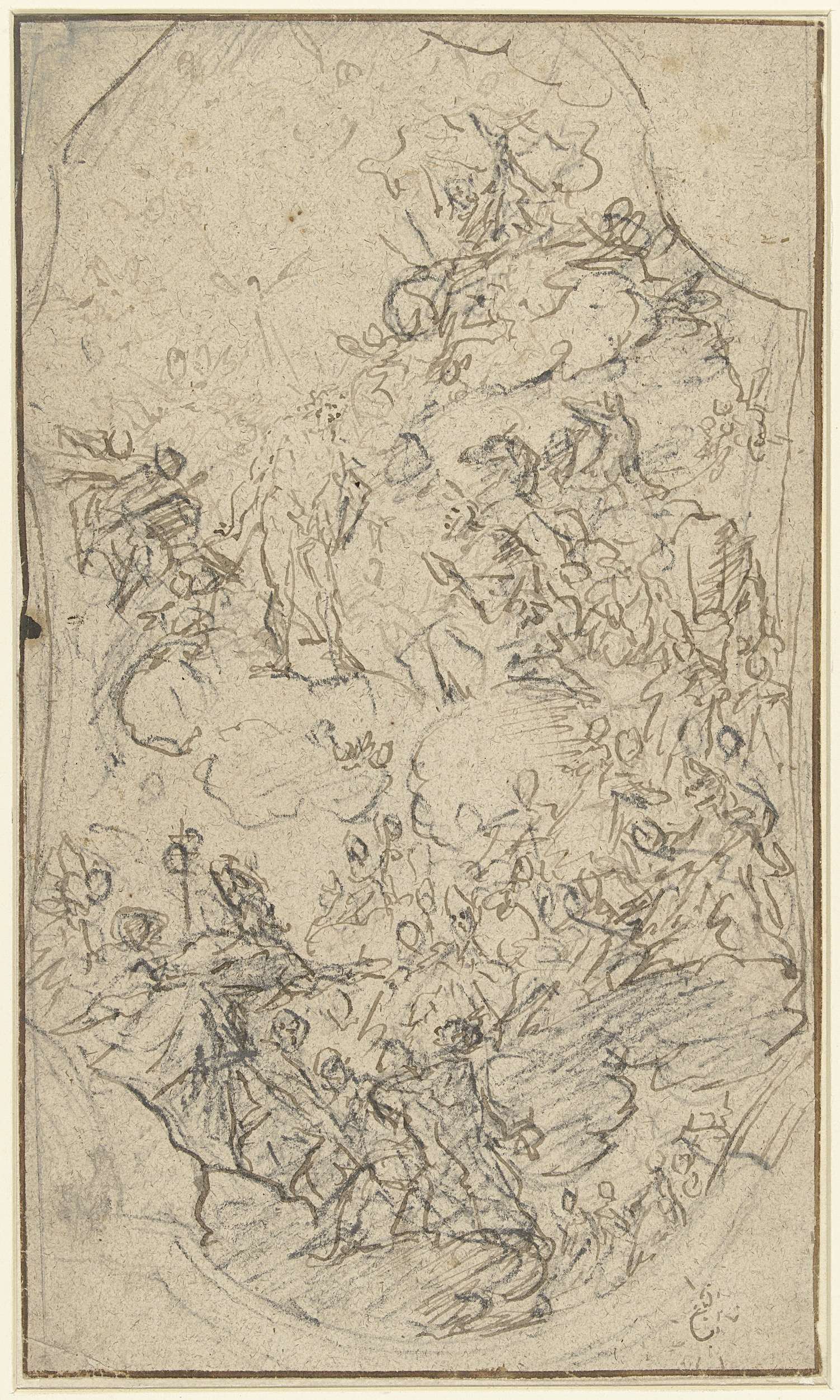 Ontwerp voor een plafondschildering met Christus in de hemel tussen heiligen