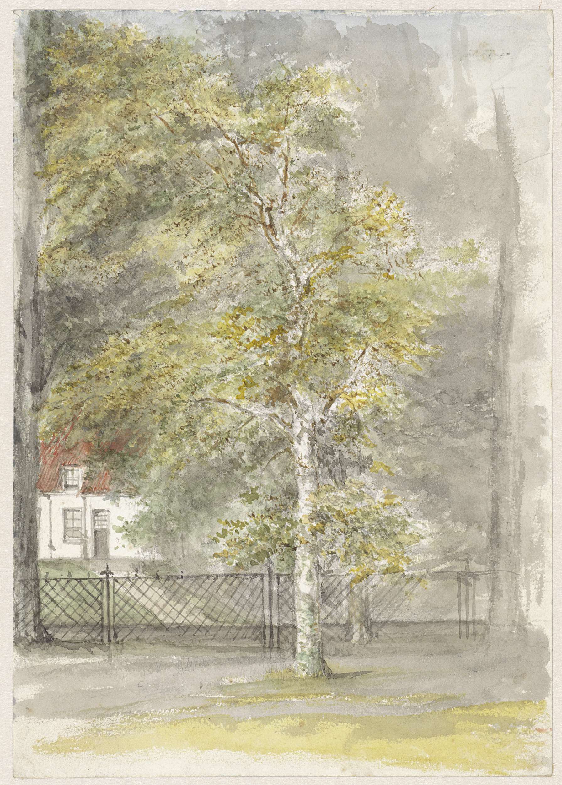 Boom voor het hek van een landhuis
