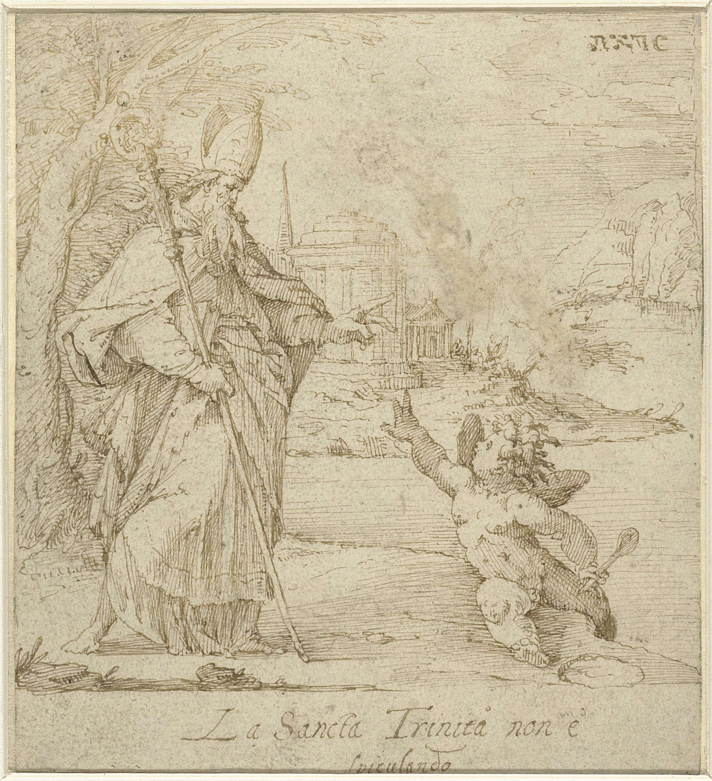 Heilige Augustinus in gesprek met het kind aan de oever van de zee.