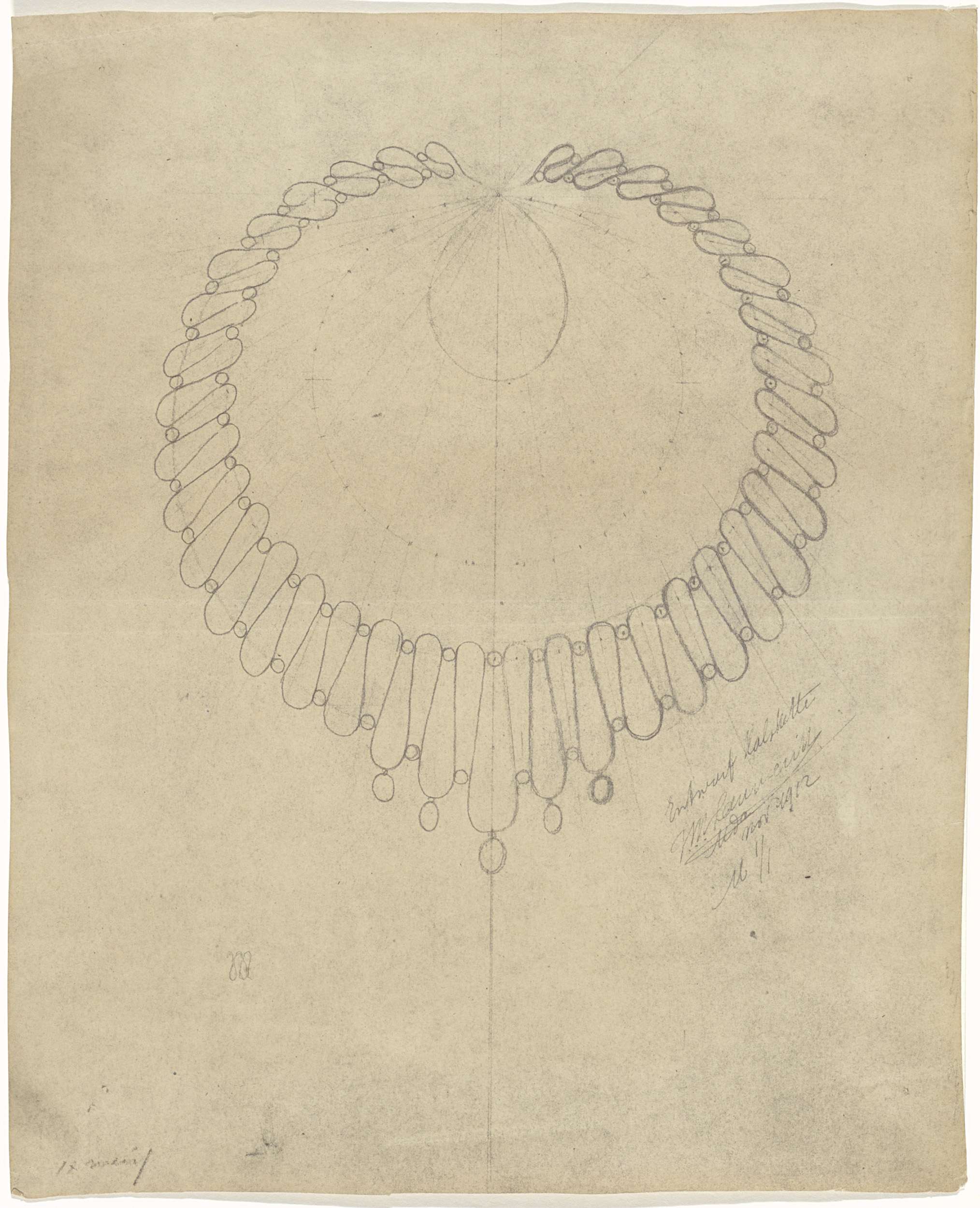 Reproductie van ontwerp voor een halsketting.