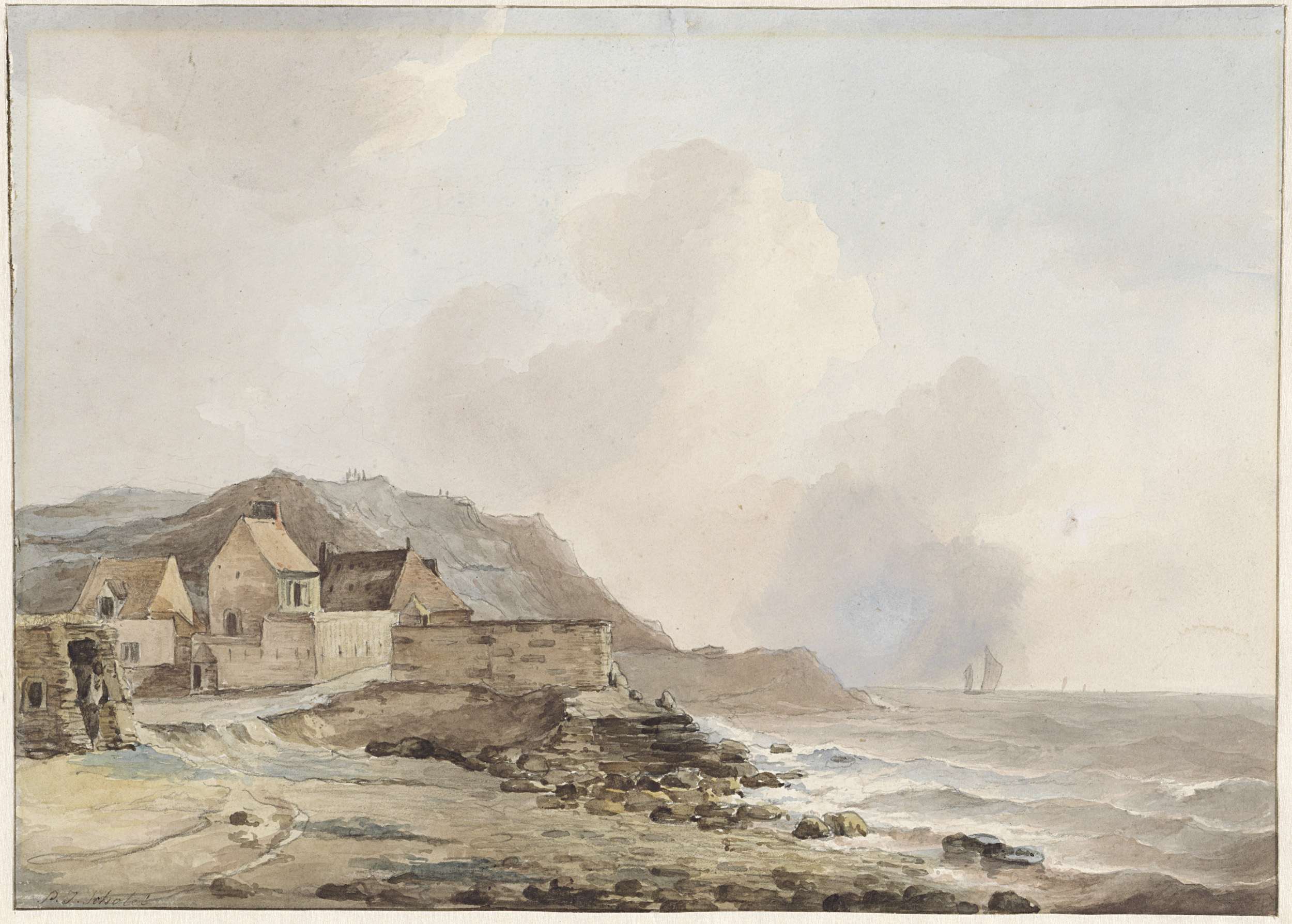 Gezicht op de kust bij Boulogne sur Mer