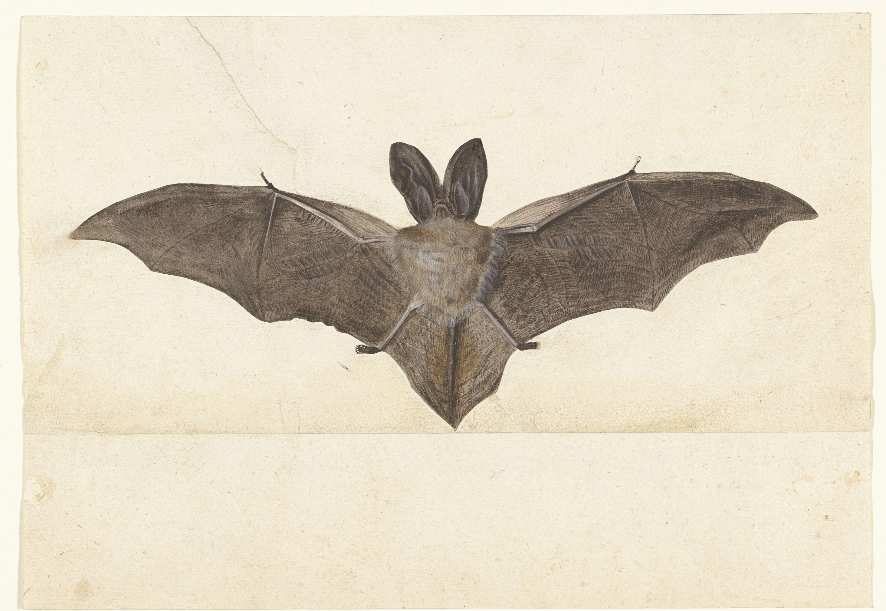 Grootoorvleermuis, vermoedelijk de Grijze Grootoorvleermuis (Plecotus austriacus).