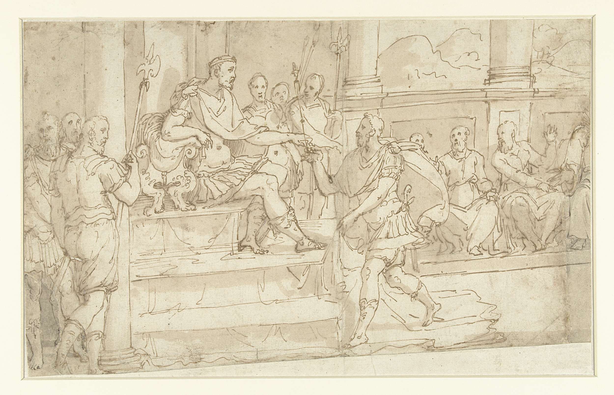 Veldheer in een vergadering voor zijn vorst tredend