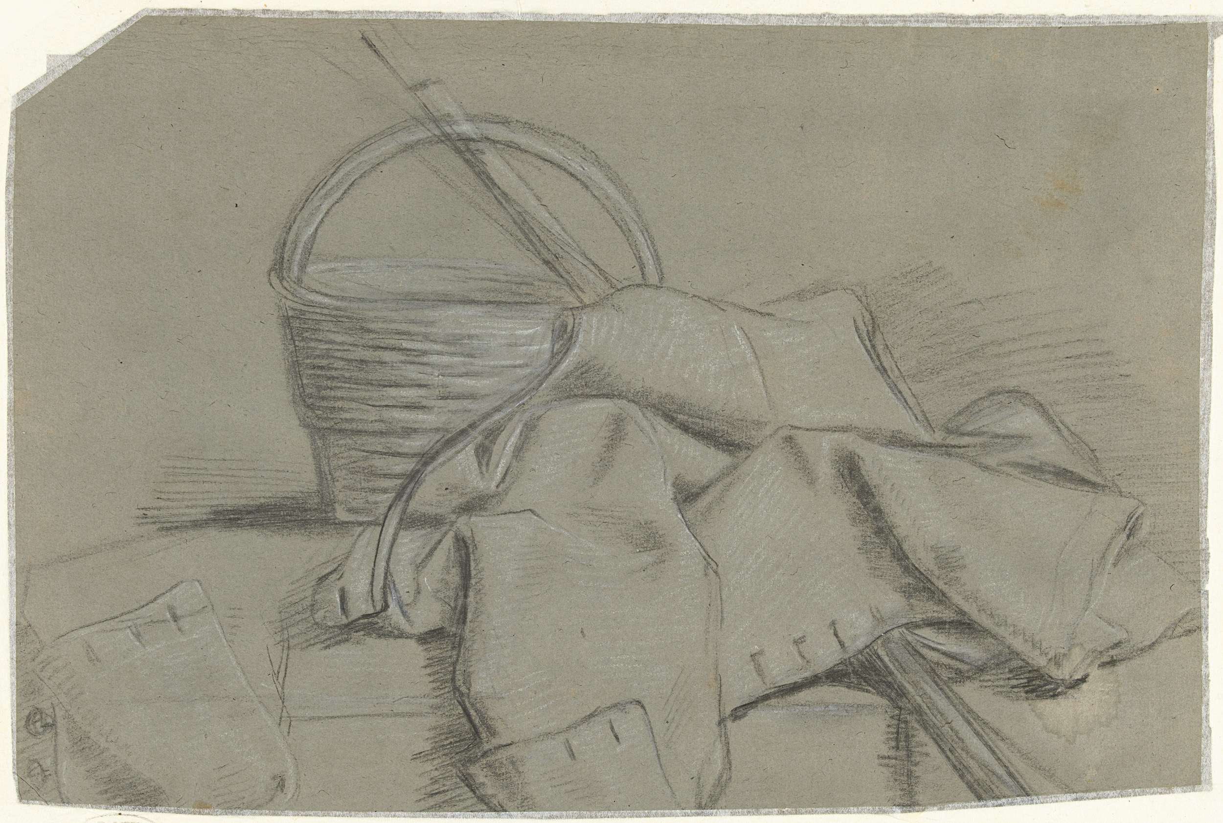 Stilleven met jas en mand