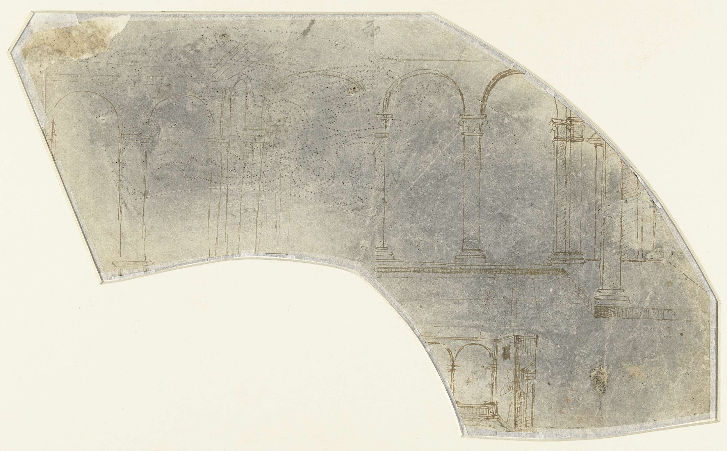 Fragment van een schetsblad met ontwerpen van interieurs en architectuurstudie