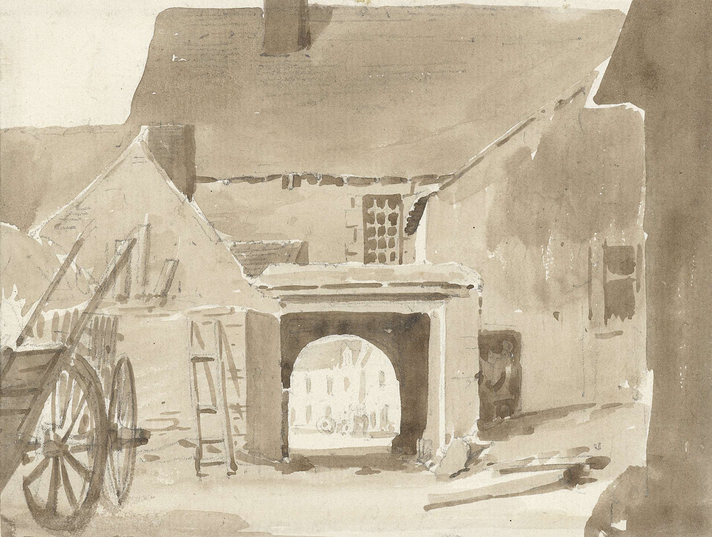 Inrit van een groot dorpshuis, van de binnenhof uit gezien
