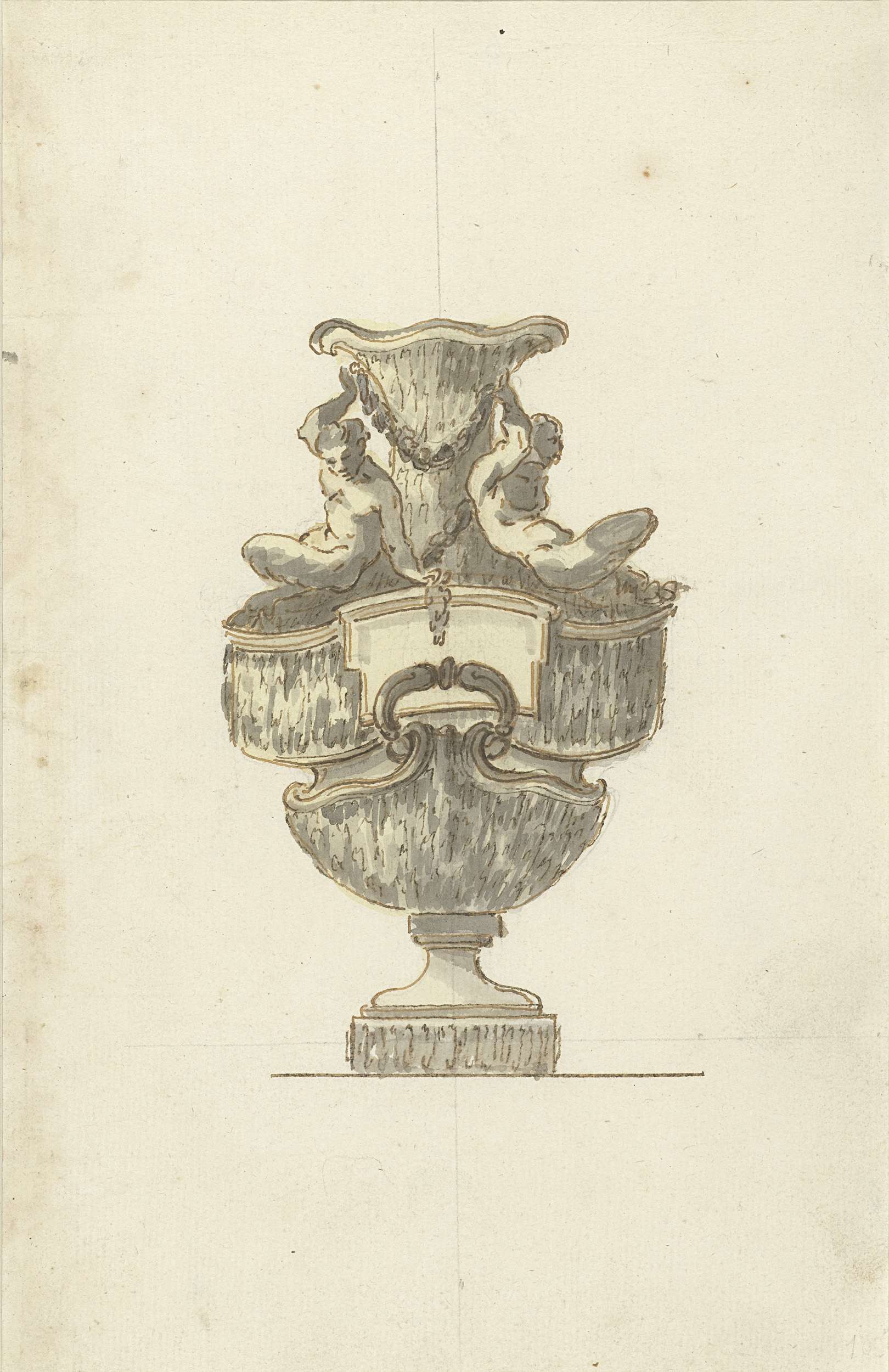 Monumentale siervaas, met een oor naar de voorzijde gekeerd en twee faunen tegen de hals.
