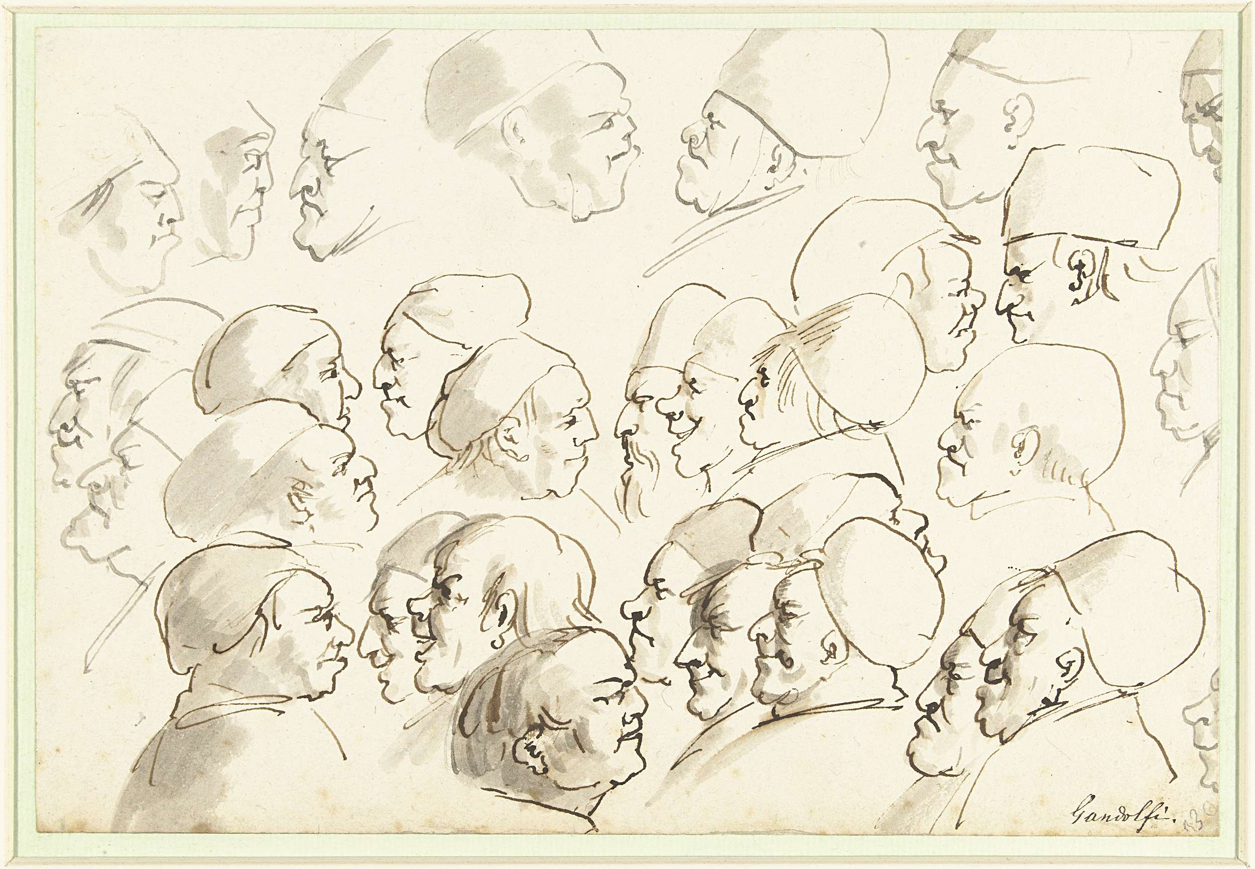 Schetsblad met karikaturen