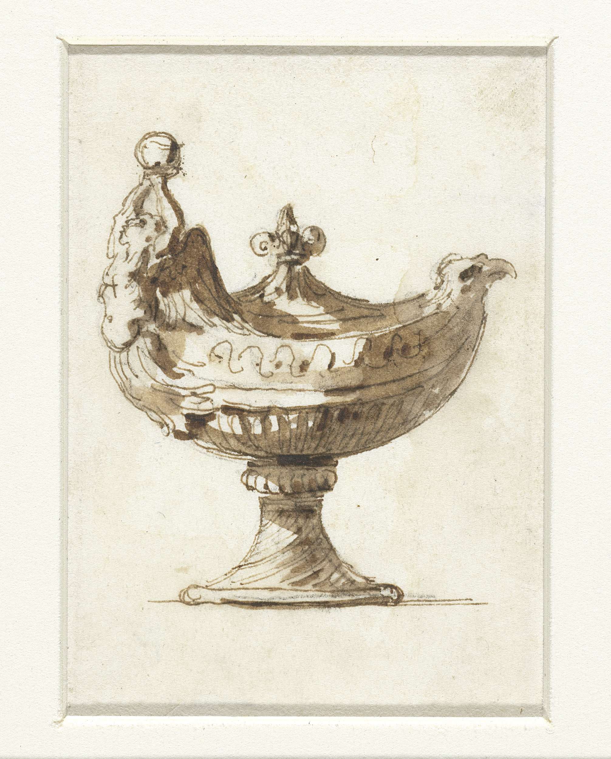 Paneelvulling met attributen van de Roomse mis: boeken, kelk, kan, pateen, deksel en kaarsen.